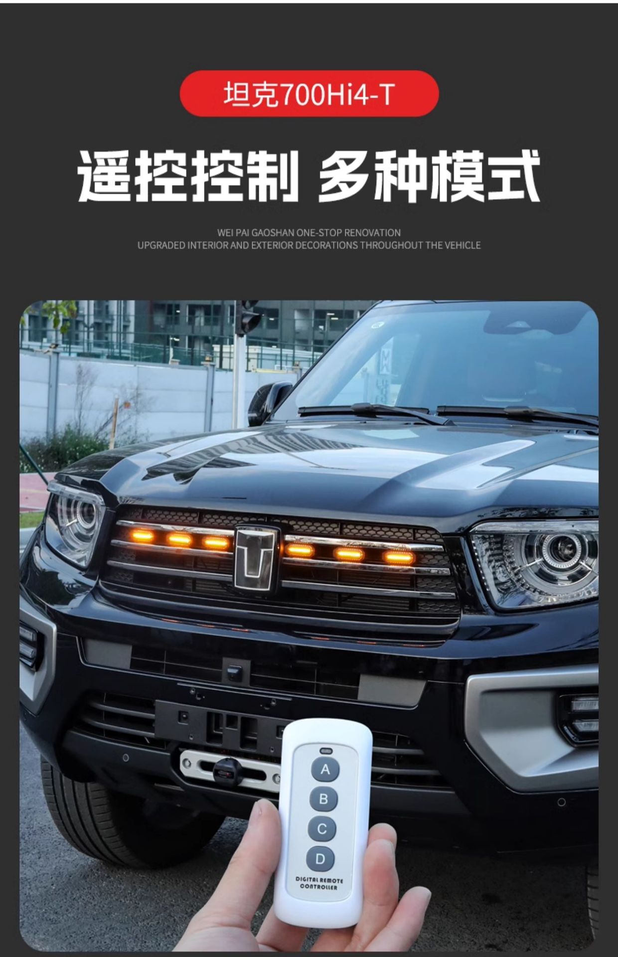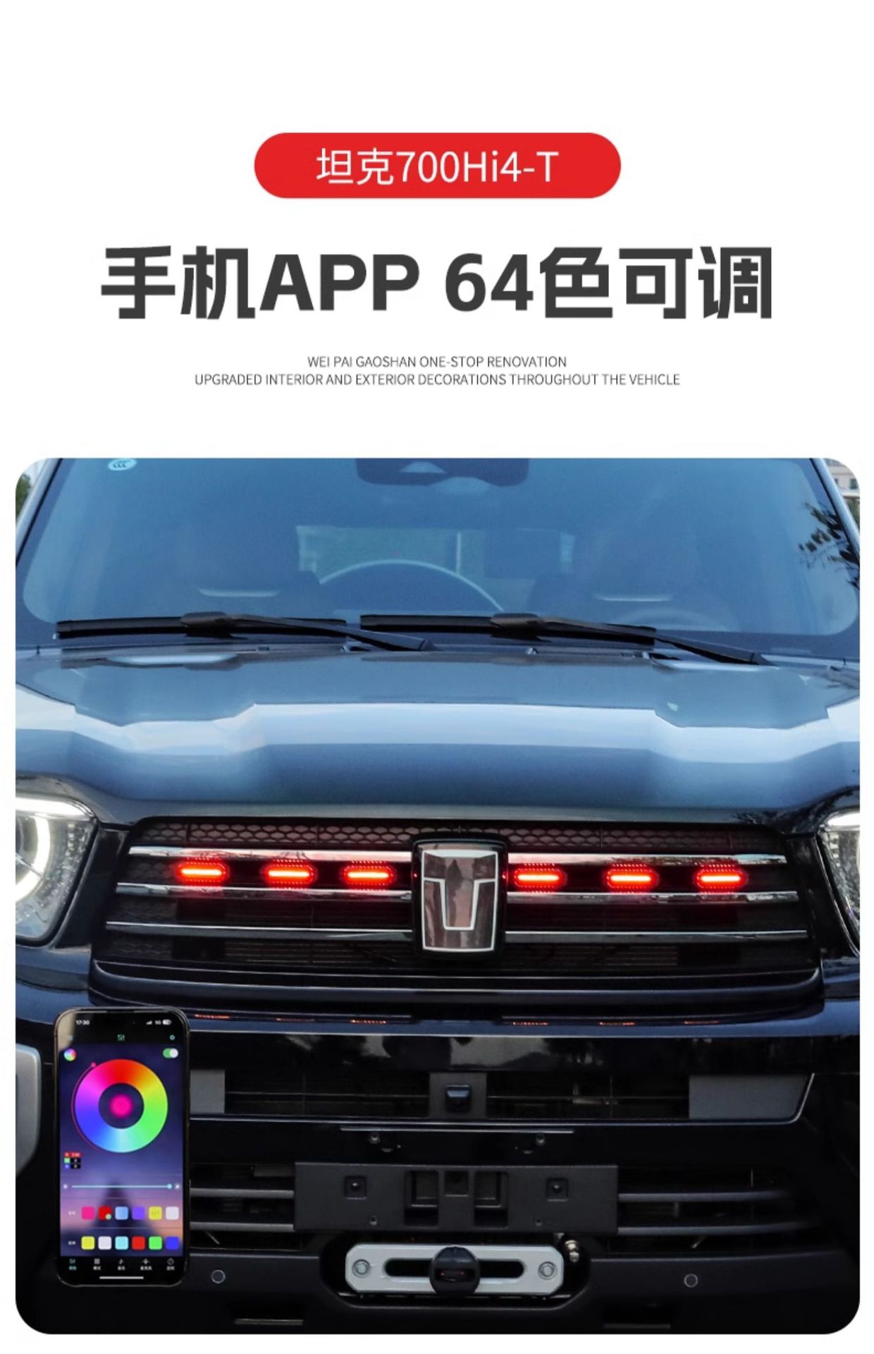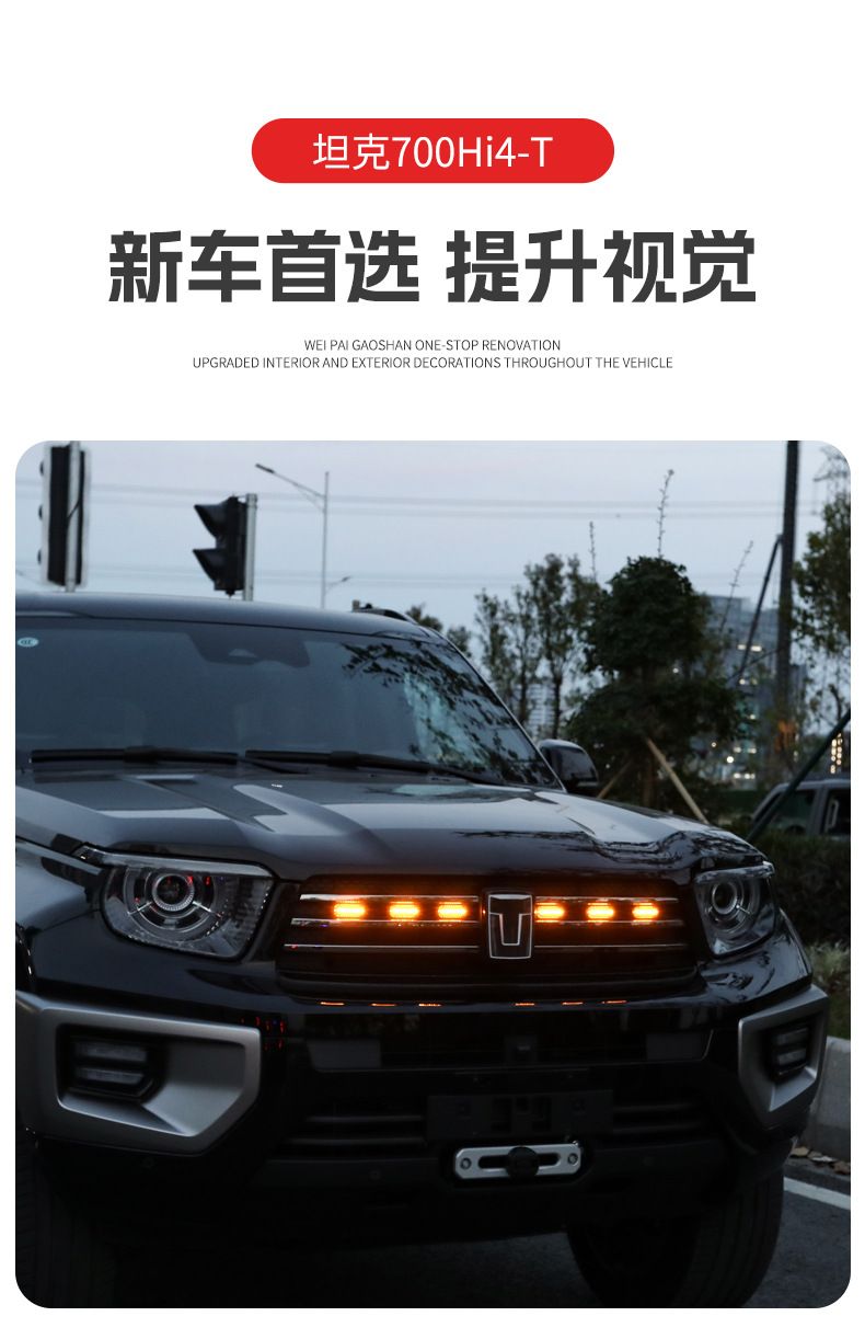 Tank 700Hi4-T small yellow light red light white light upgrade buckle middle net light LED colorful front face decoration modification