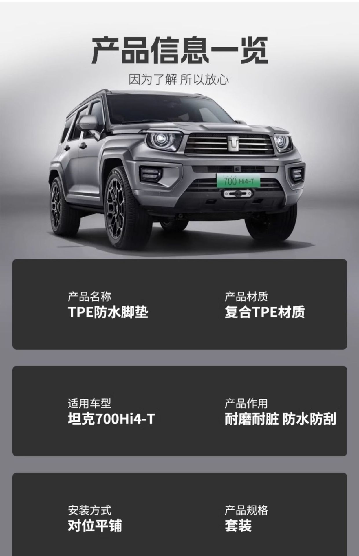 Be the first to review “Tank 700Hi4-T Waterproof Foot Mat Trunk Mat Tail Mat Special Interior TPE Car Foot Mat Modified Parts” Cancel reply