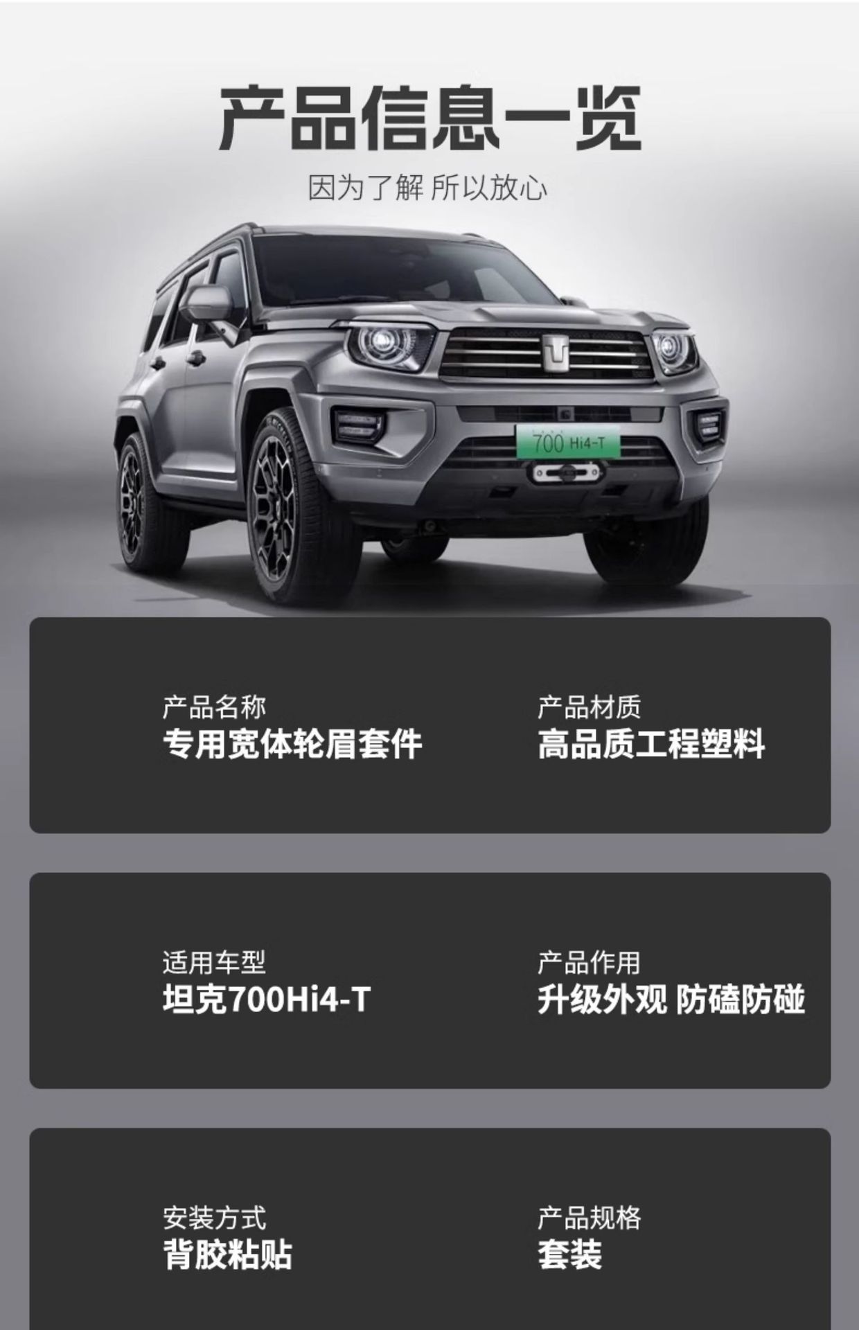 Tank 700Hi4-T Wheel Eyebrow Wide Body Modification Limited Edition Same Type Modification Decoration Special Appearance Upgrade Accessories