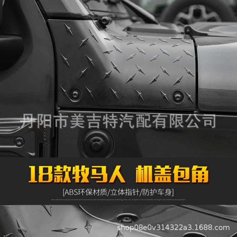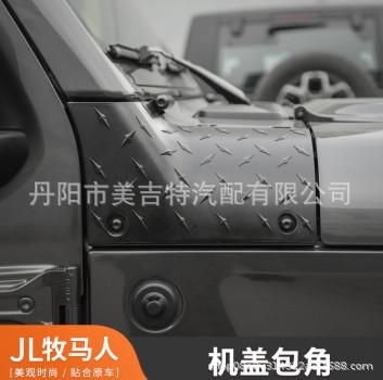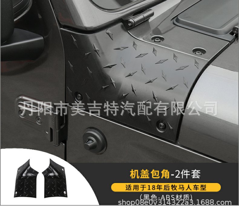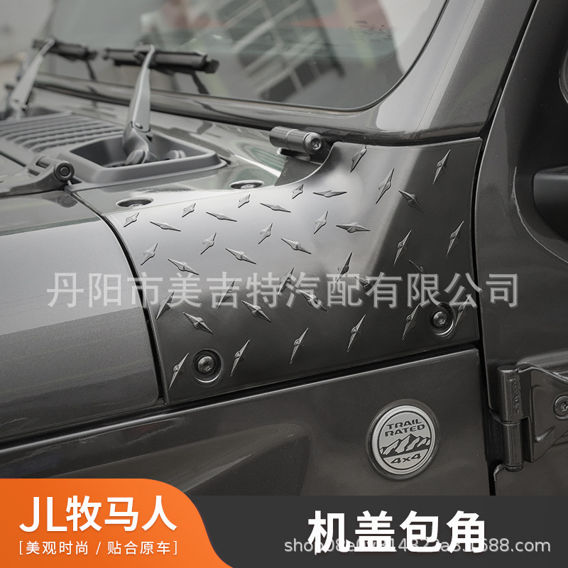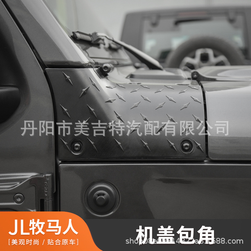 Protect your 2018-2024 Jeep Wrangler JL with these durable ABS hood cowl corner guards. Features a rugged diamond plate texture and easy adhesive installation.