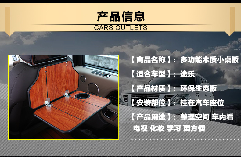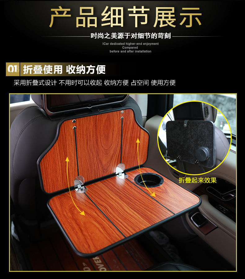 Toulouse y62 Car Folding Small Table Prado Overbearing Seat Backrest Folding Wooden Table Interior Accessories