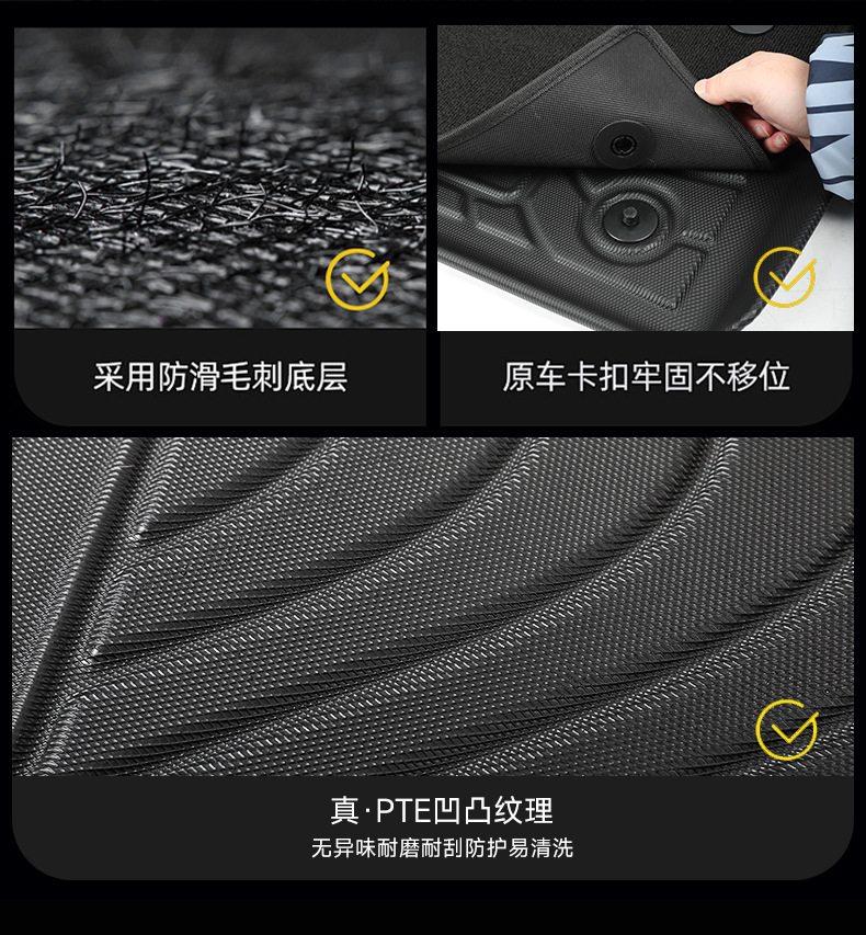 - Non-Slip Safety Design: Features a secure backing system that keeps the mats firmly in place, preventing interference with pedals for safer driving.