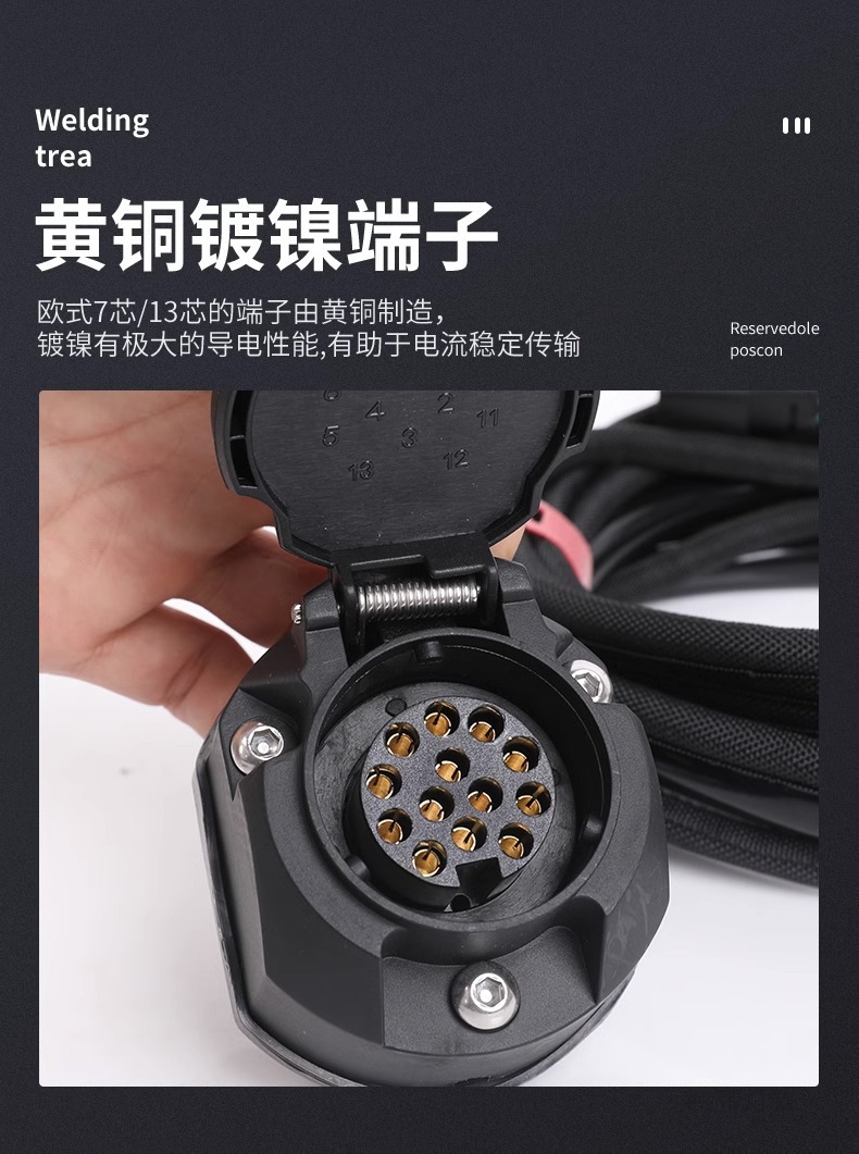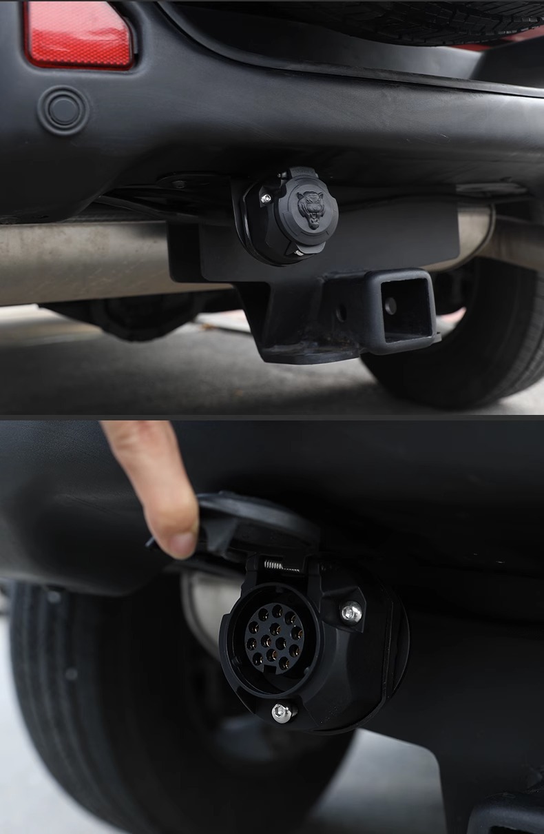 - Dual-standard configuration supports both 7-pin and 13-pin connections for versatile towing applications.