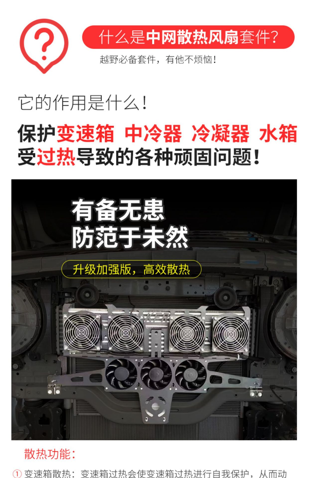 - Modification Essential: An ideal auxiliary cooling solution for off-road enthusiasts and performance-tuned vehicles requiring additional thermal management.