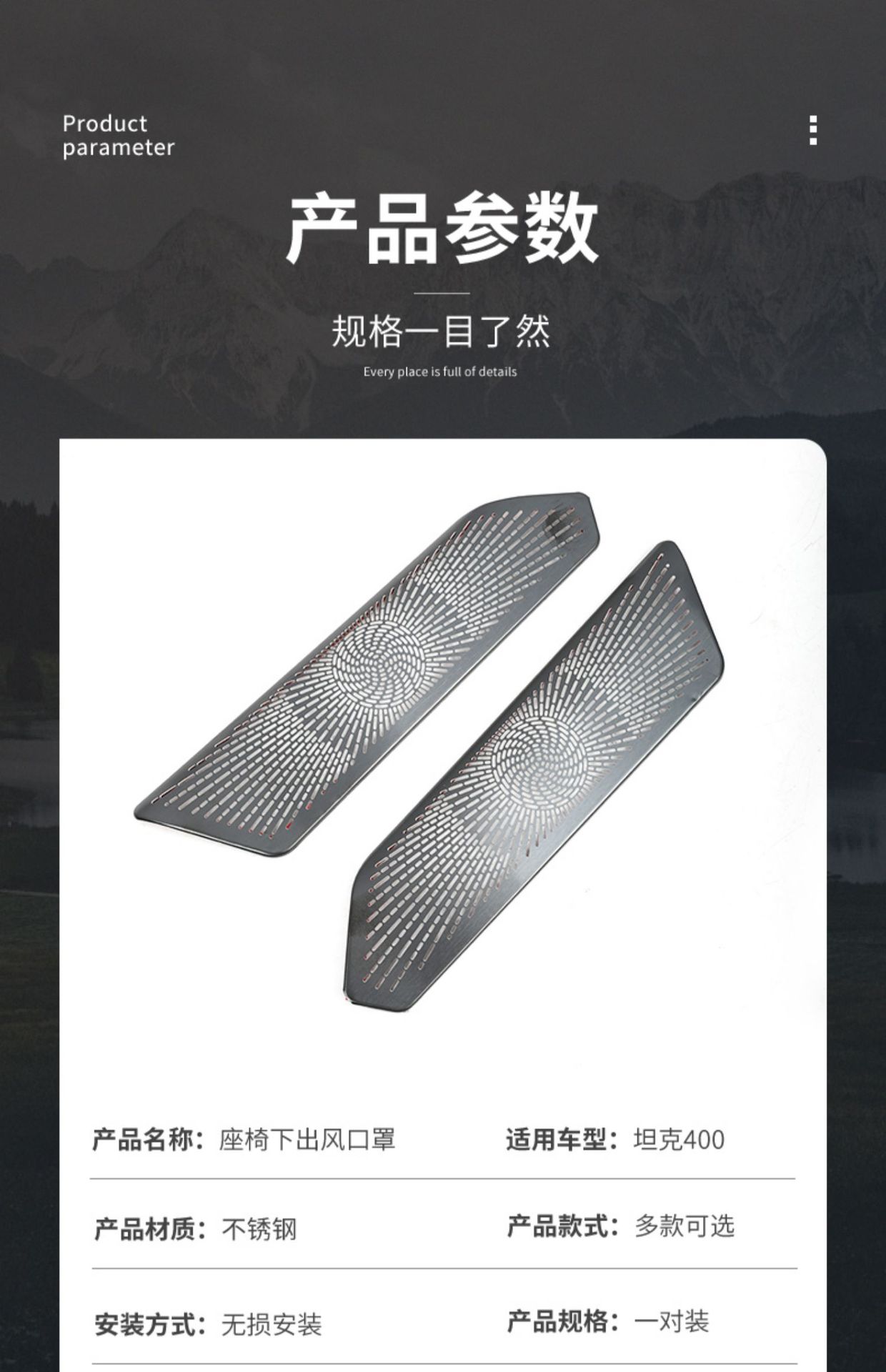 Be the first to review “Under-Seat Air Outlet Vent Cover for Tank 400 Hi4-T Anti-Clogging Protective Grille Interior Trim” Cancel reply