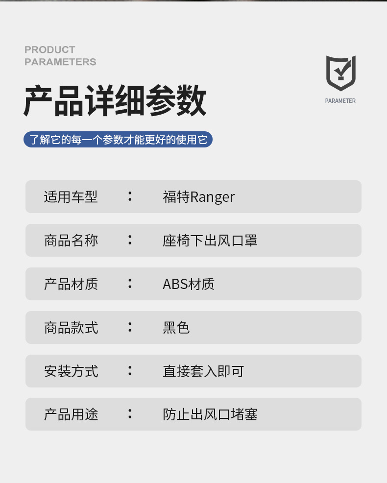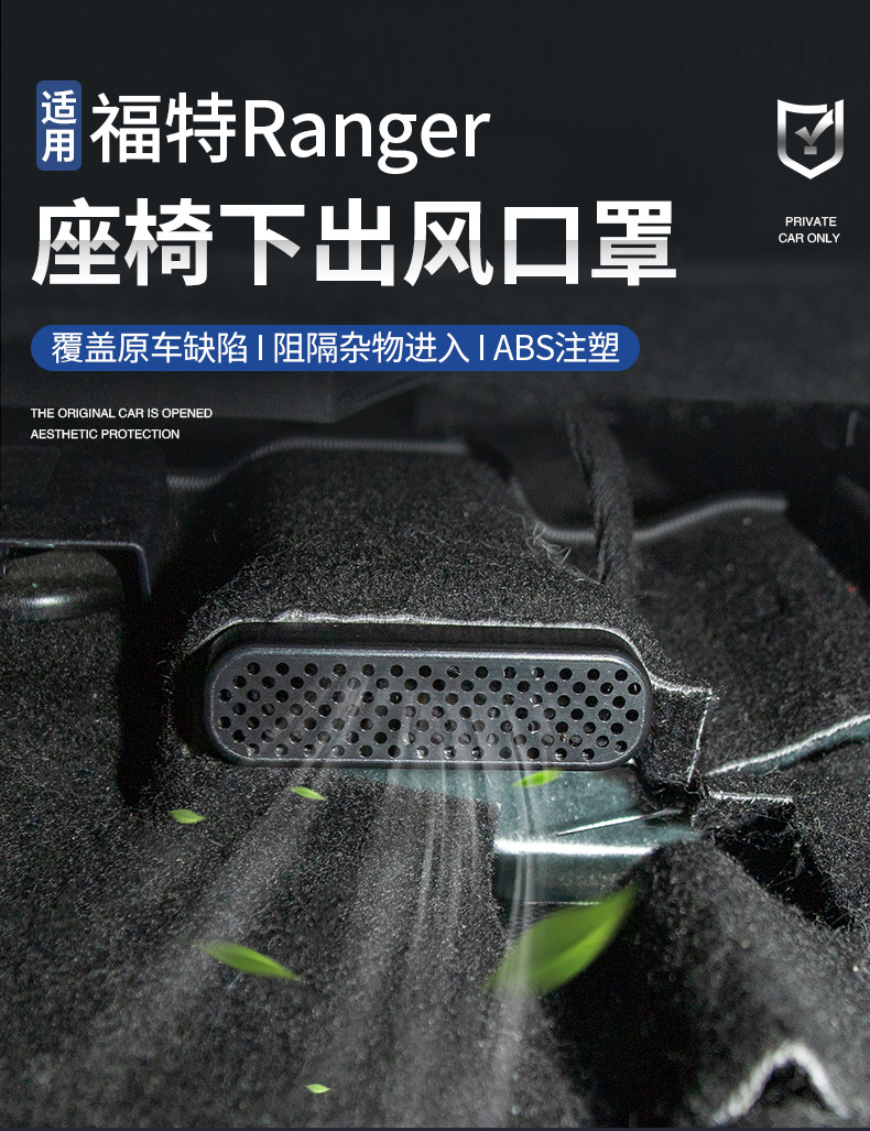 - Specifically designed to fit the rear under-seat foot air vents of the Ford Ranger for a seamless integration.