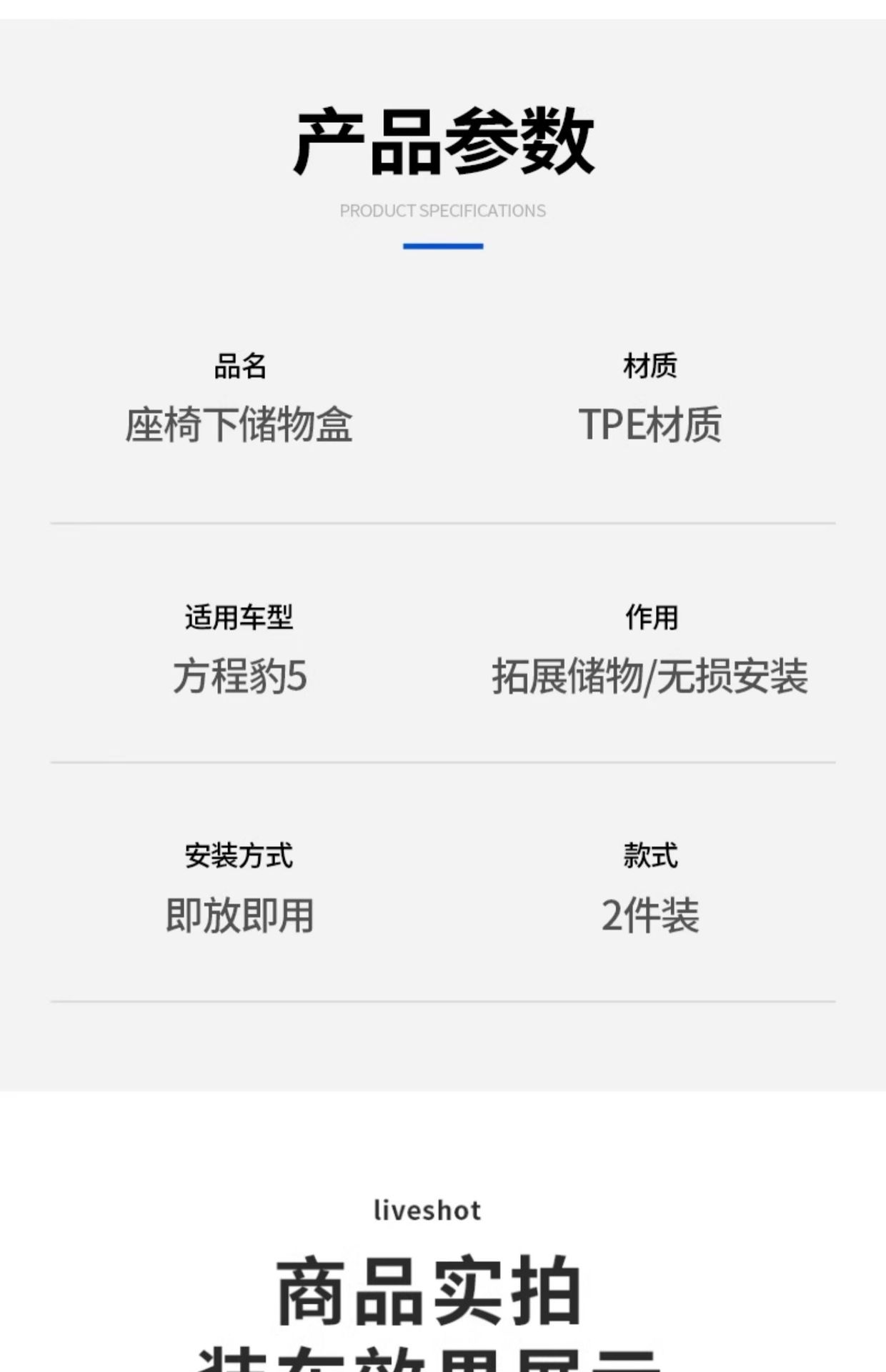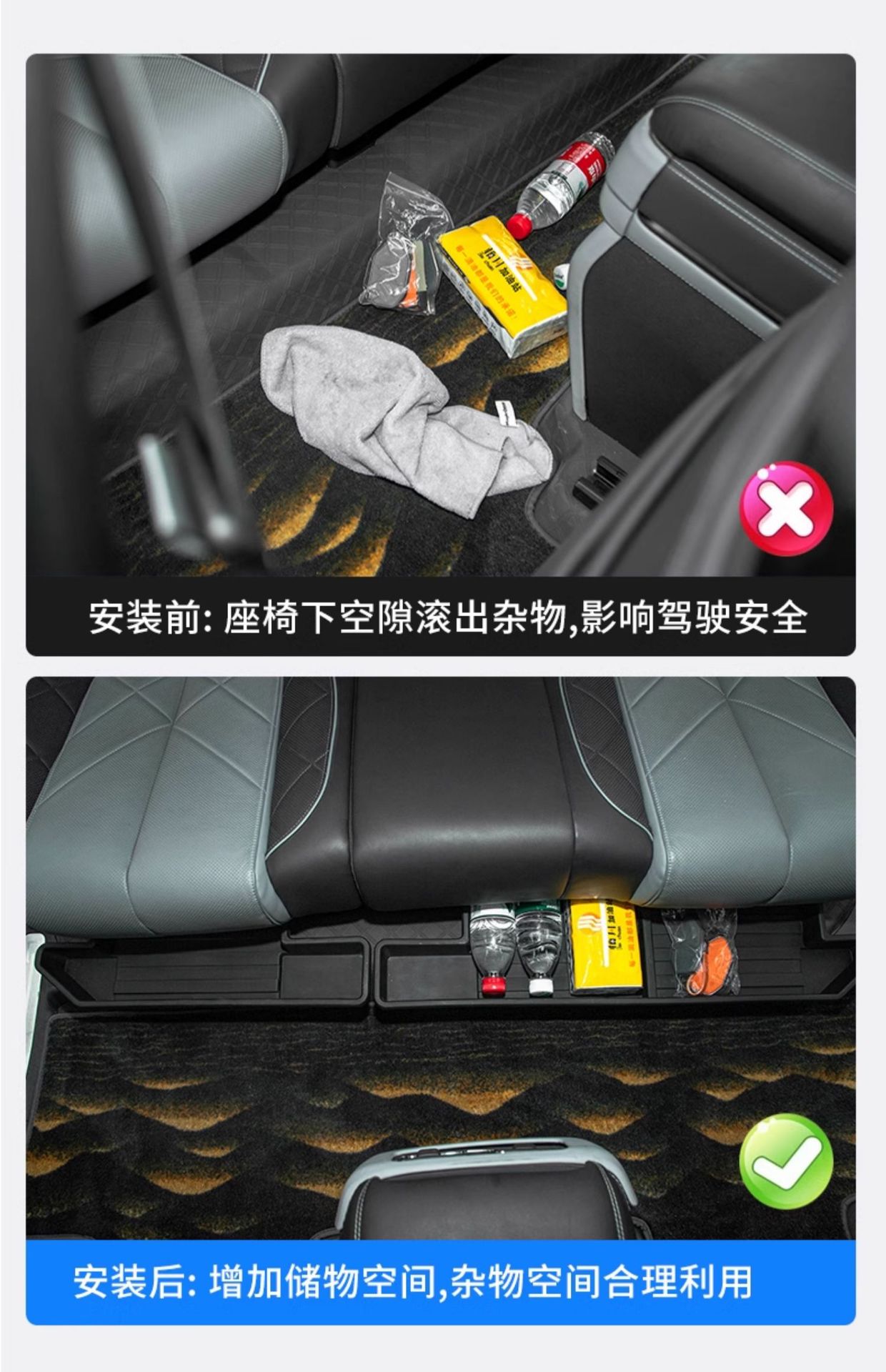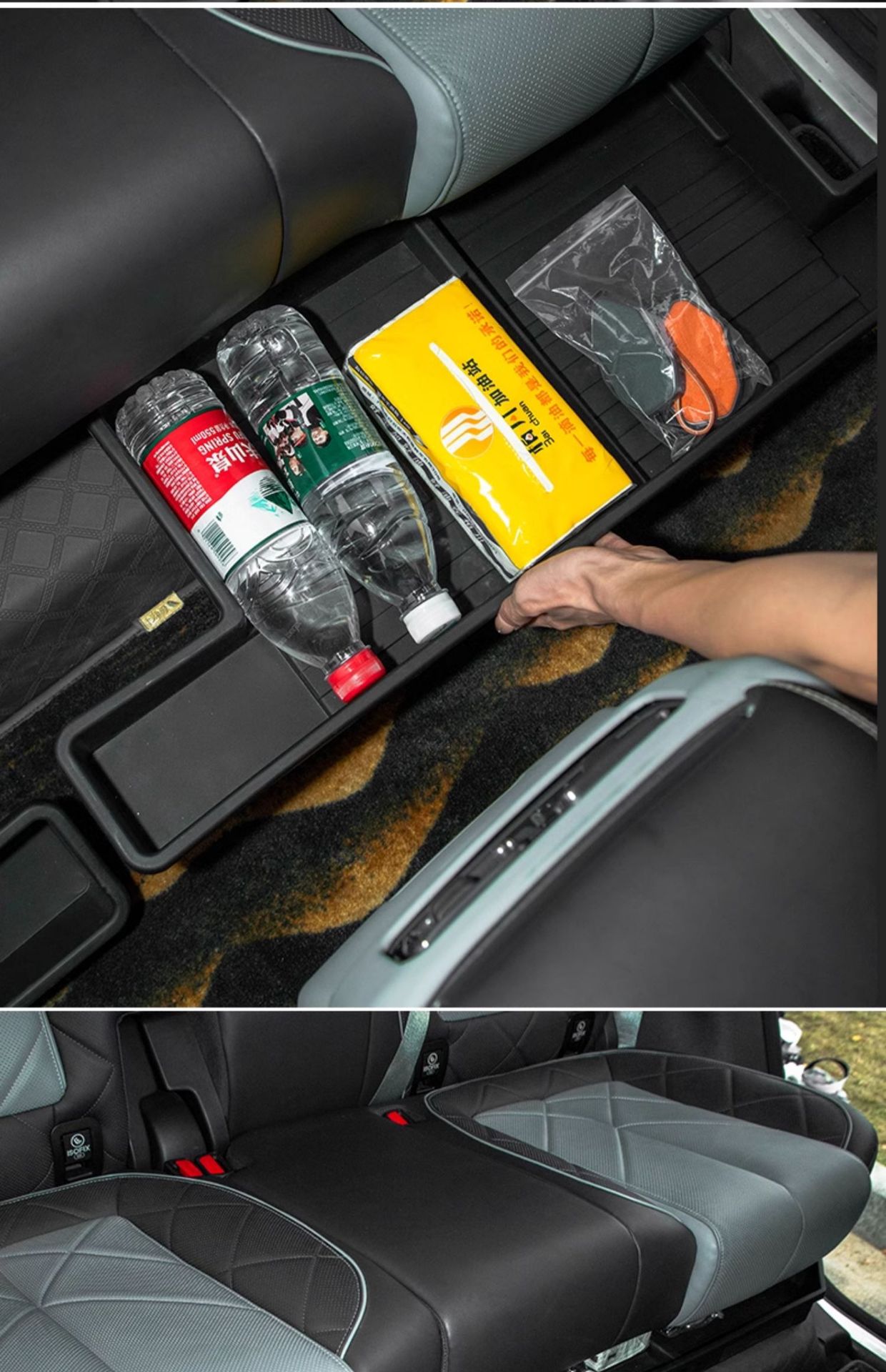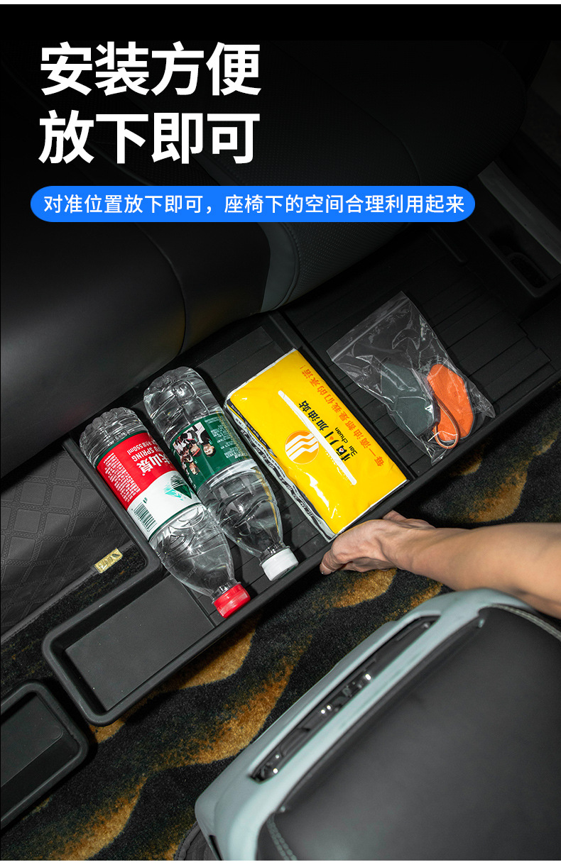 Tags: automotive cabin organizer, car under seat organizer, fang cheng bao 5 accessories, hidden interior tray, rear seat storage box, seat gap storage