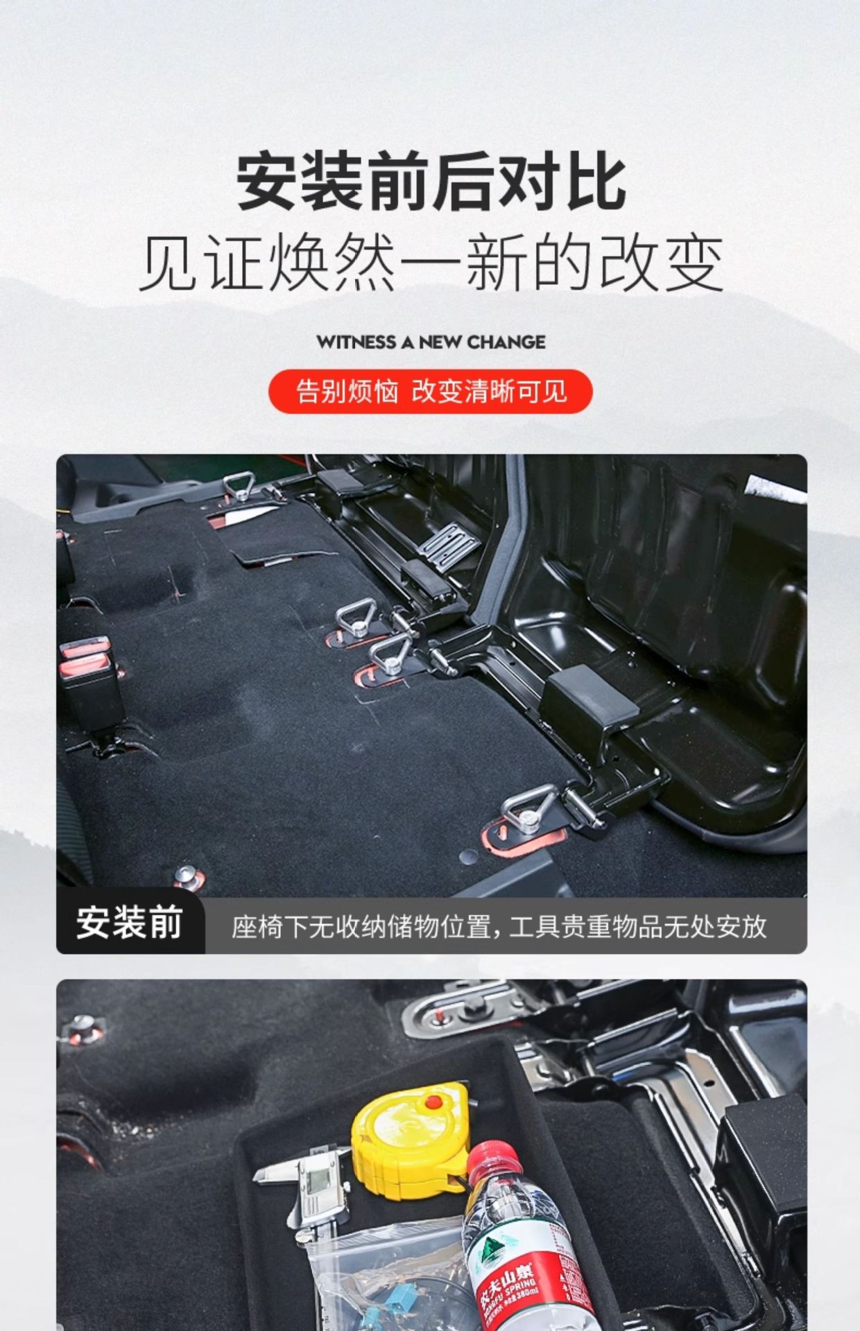 - Maximizes unused space beneath the front seats to provide additional storage for essential items.