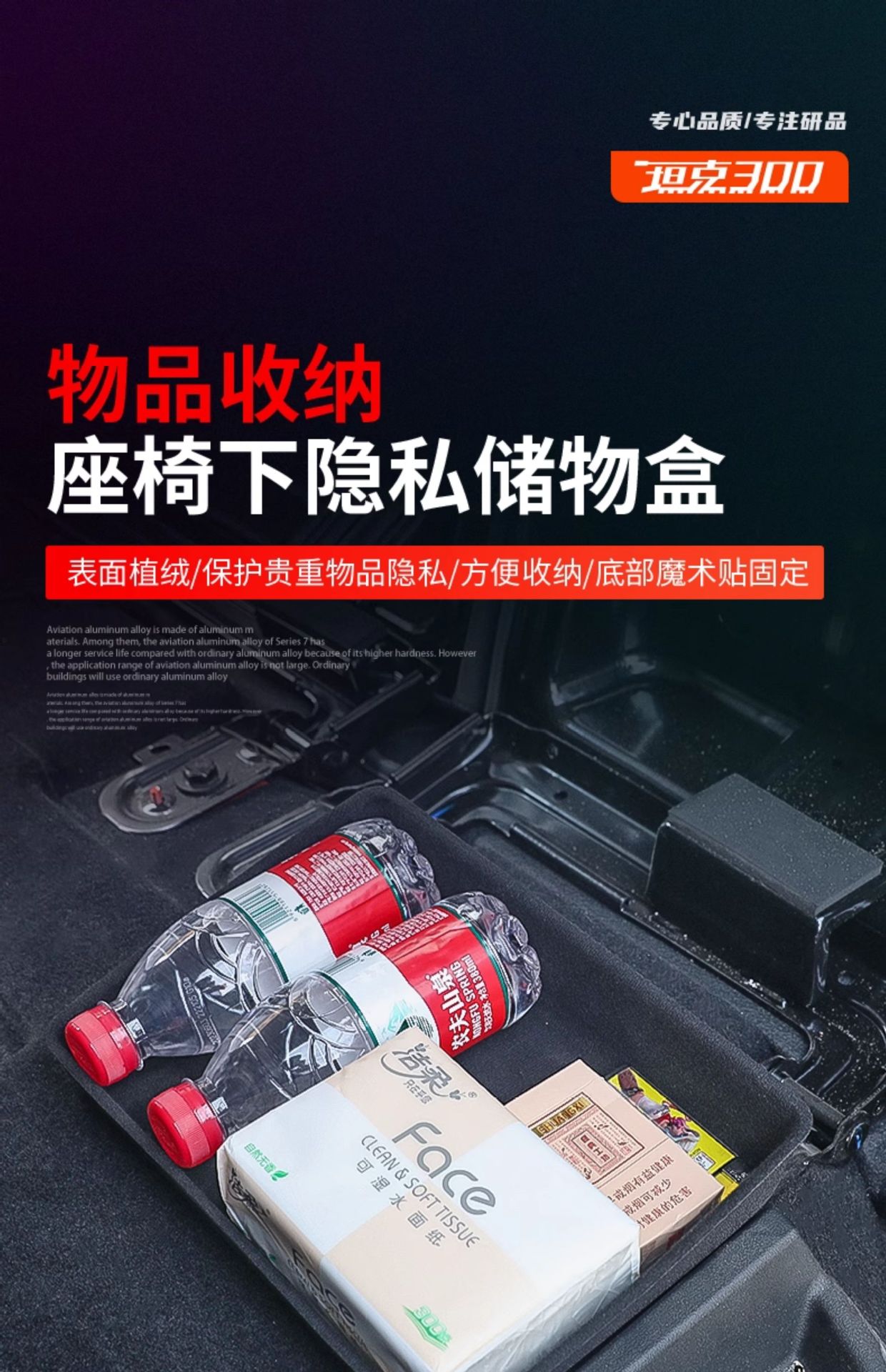 Under-Seat Storage Box Organizer for Tank 300, Interior Privacy Tray and Gap Storage Bin, Automotive Cabin Accessory