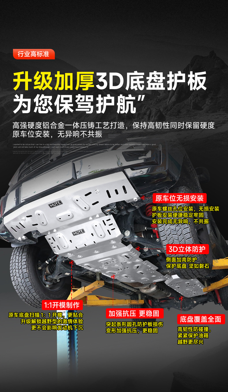 - Heavy-duty underbody protection designed to shield vital chassis components from off-road debris and impacts.