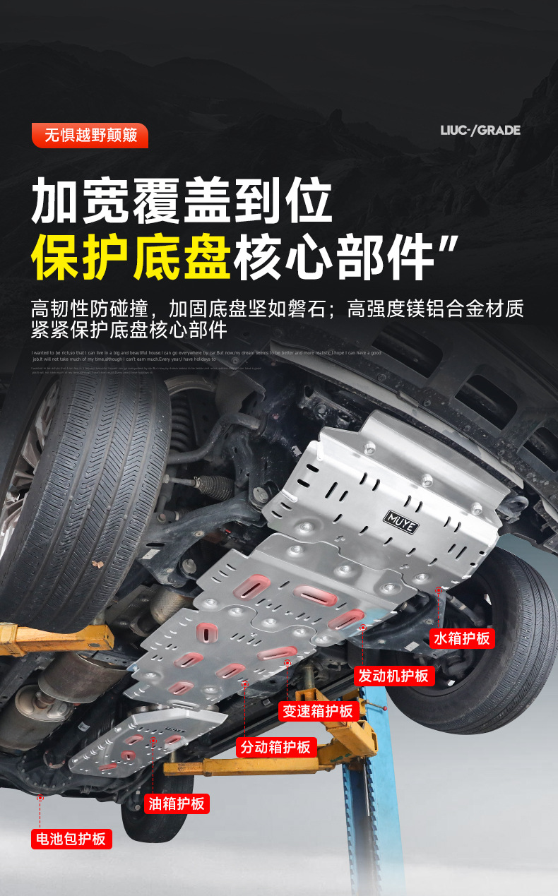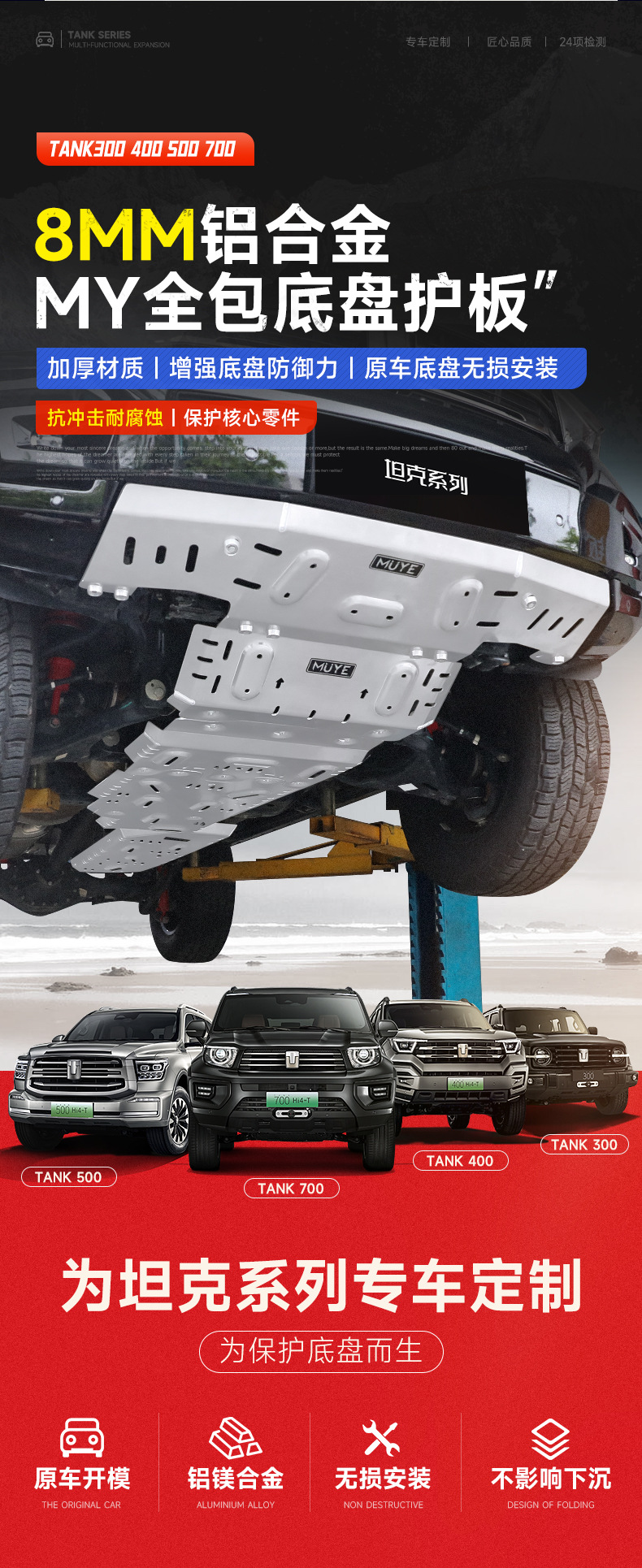 Protect your vehicle with our 8mm aluminum magnesium alloy skid plate. Durable chassis shield designed for Tank 300/400/500/700 for ultimate off-road security.