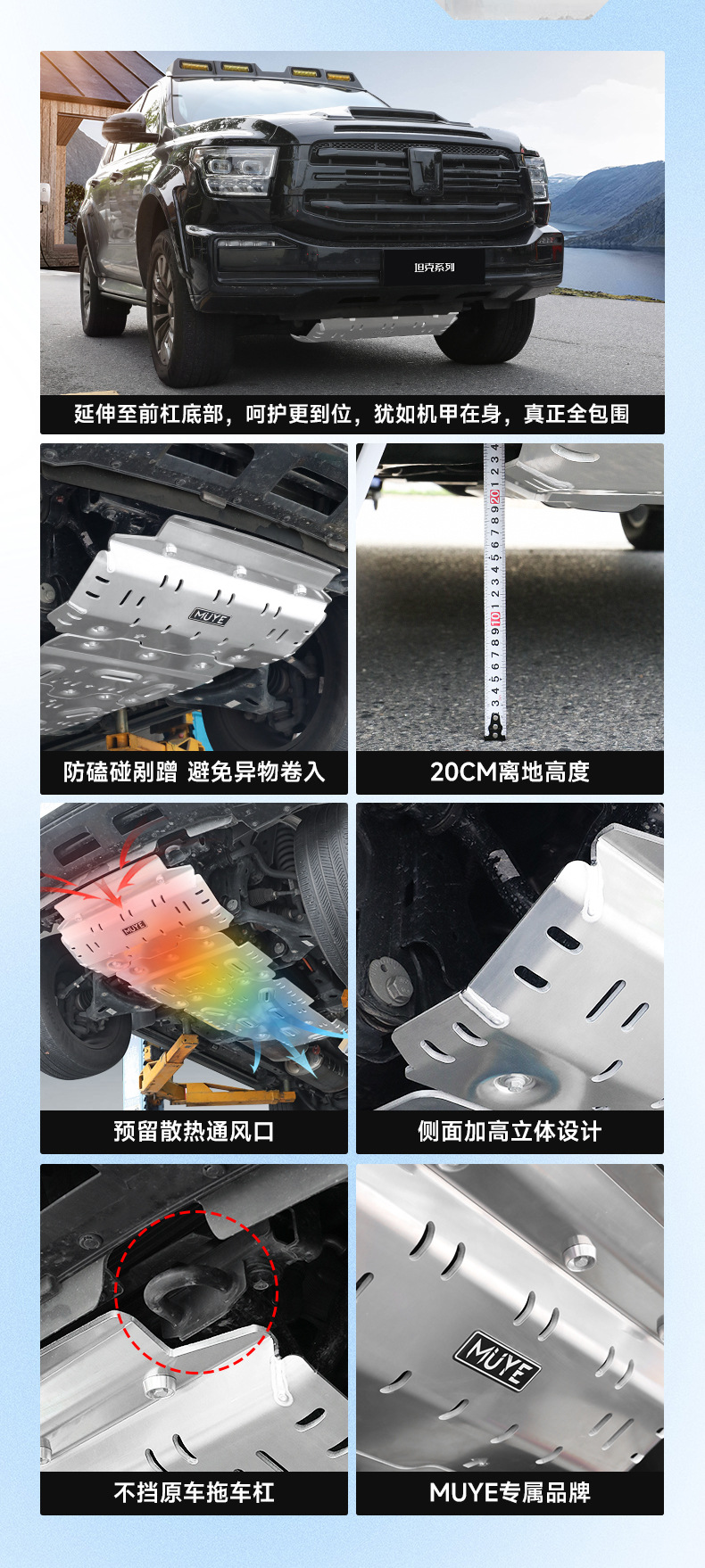 Protect your vehicle with our 8mm aluminum magnesium alloy skid plate. Durable chassis shield designed for Tank 300/400/500/700 for ultimate off-road security.