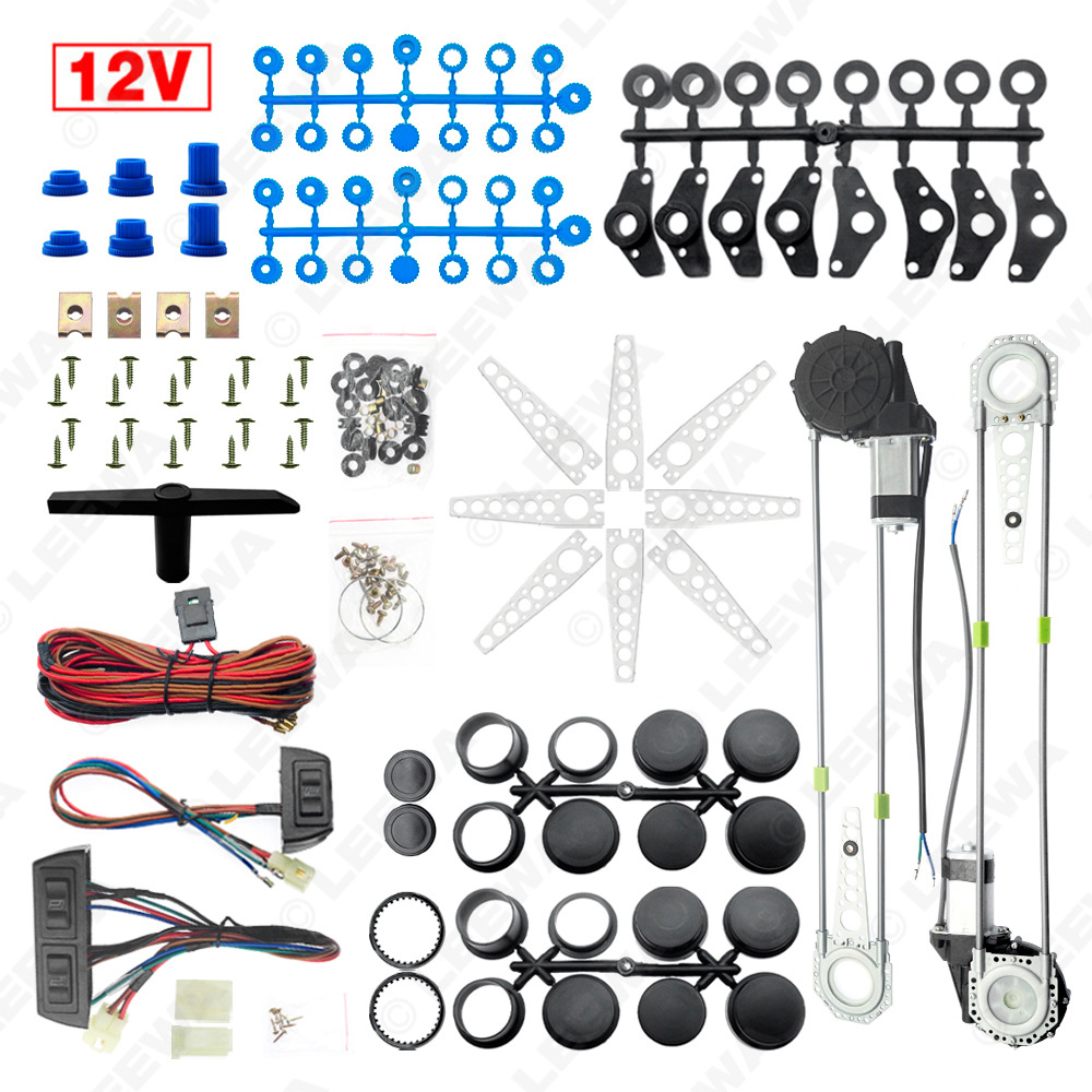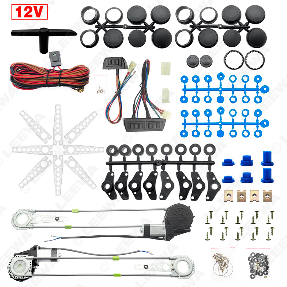 - Complete 2-door power window conversion kit designed to upgrade manual windows or replace existing electrical switch systems.
