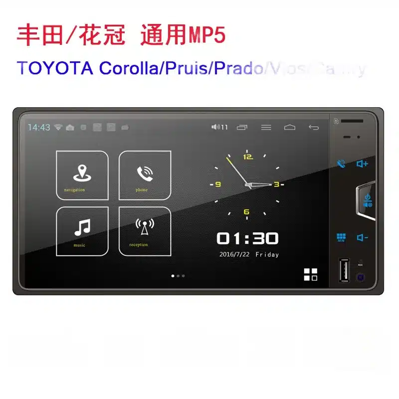 - Universal Double DIN chassis design specifically tailored to fit various Toyota models and standard 2 DIN dashboard slots.