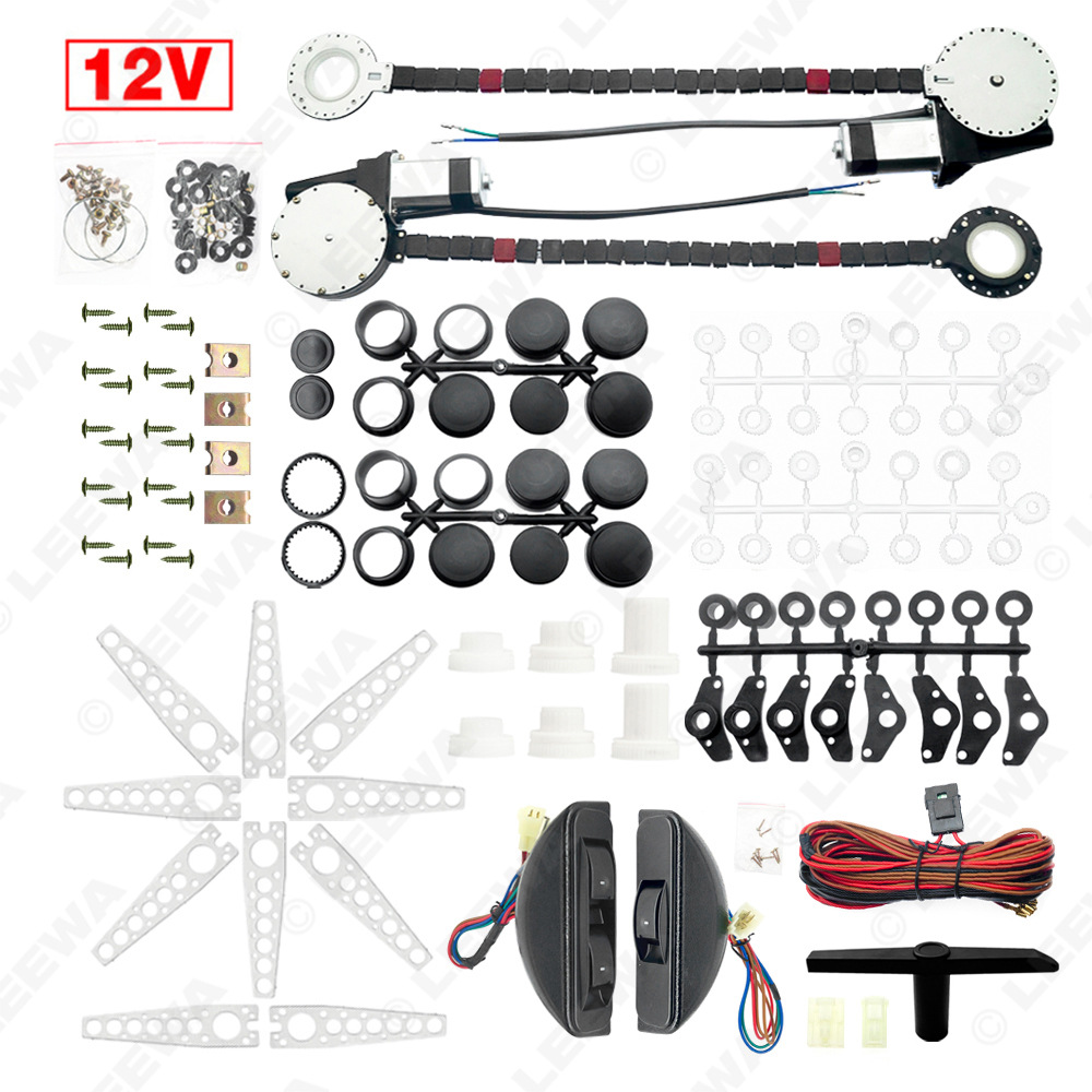 Universal 2-Door 12V Electric Power Window Conversion Kit with 3 Crescent Switches for Classic Car Restoration