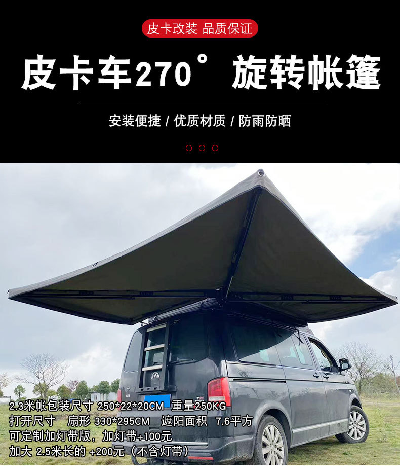 Upgrade your pickup with this 270-degree rotating side awning. Perfect for GWM Poer, Navara, and D-MAX, offering durable sunshade and weather protection for camping.