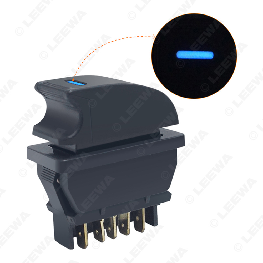 Upgrade your vehicle with this universal 5-pin 12V/24V 20A power window switch featuring a blue LED indicator and wiring harness for easy DIY installation.