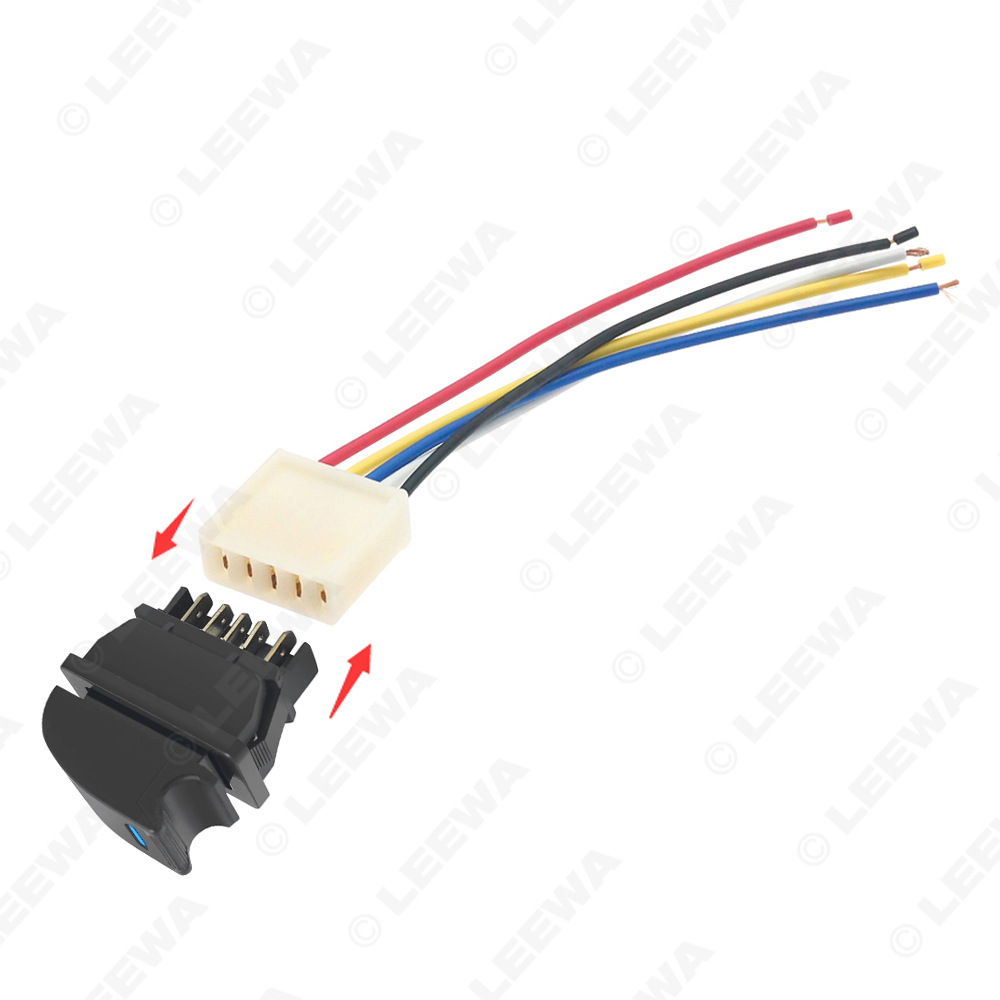Universal 5-Pin Electric Power Window Switch 12V/24V 20A with Blue LED Indicator and Wiring Harness