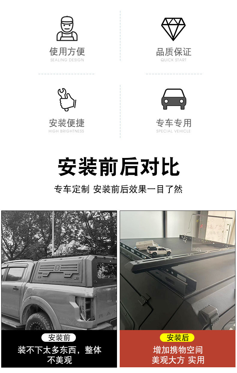 Pickup Truck Bed Cover Steel Three-Fold Rear Cargo Box High Canopy Rainproof