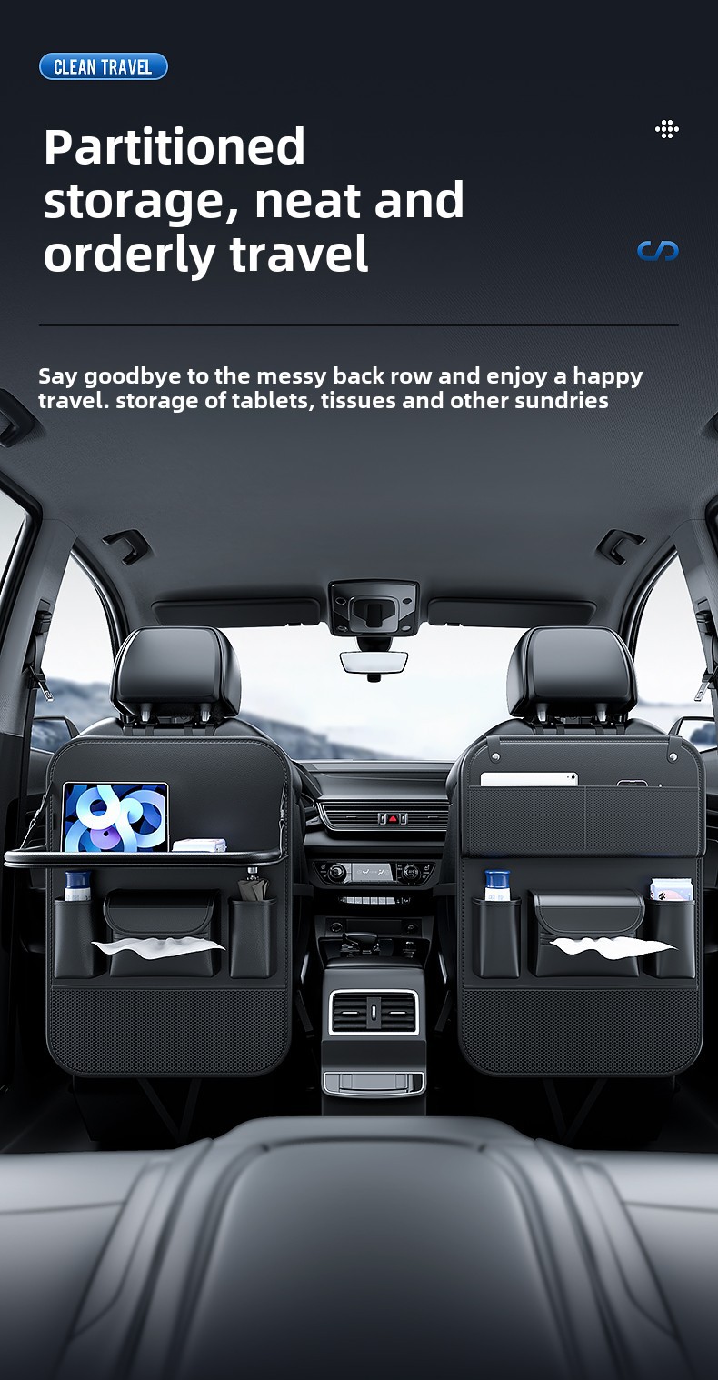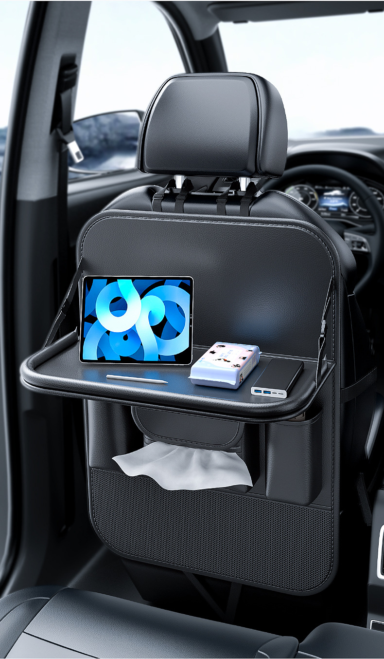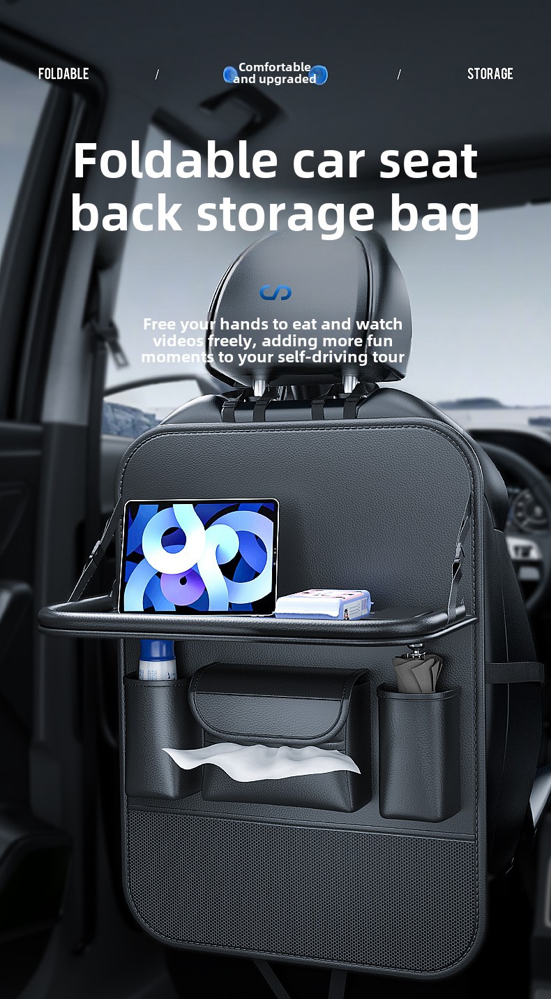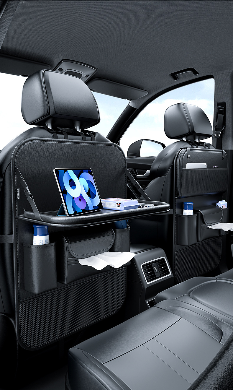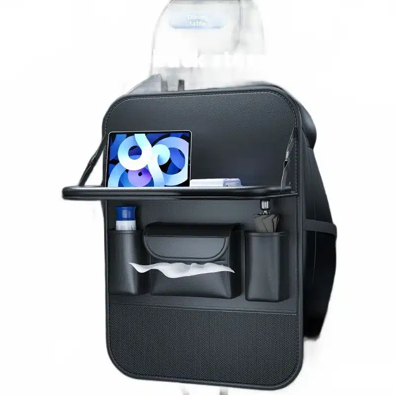 Upgrade your vehicle’s interior with this multi-functional car backseat organizer featuring a folding tray table. Durable, spacious, and easy to install for travel.