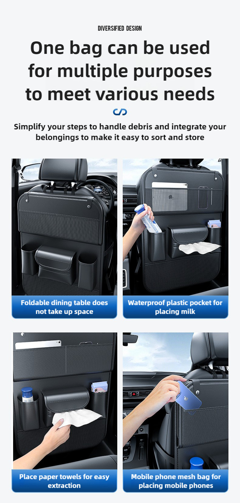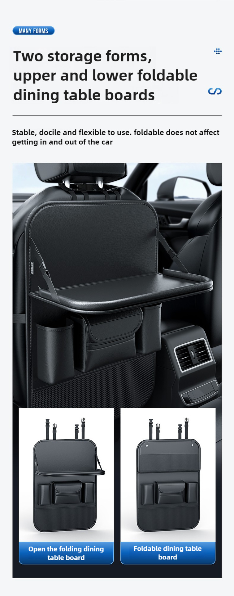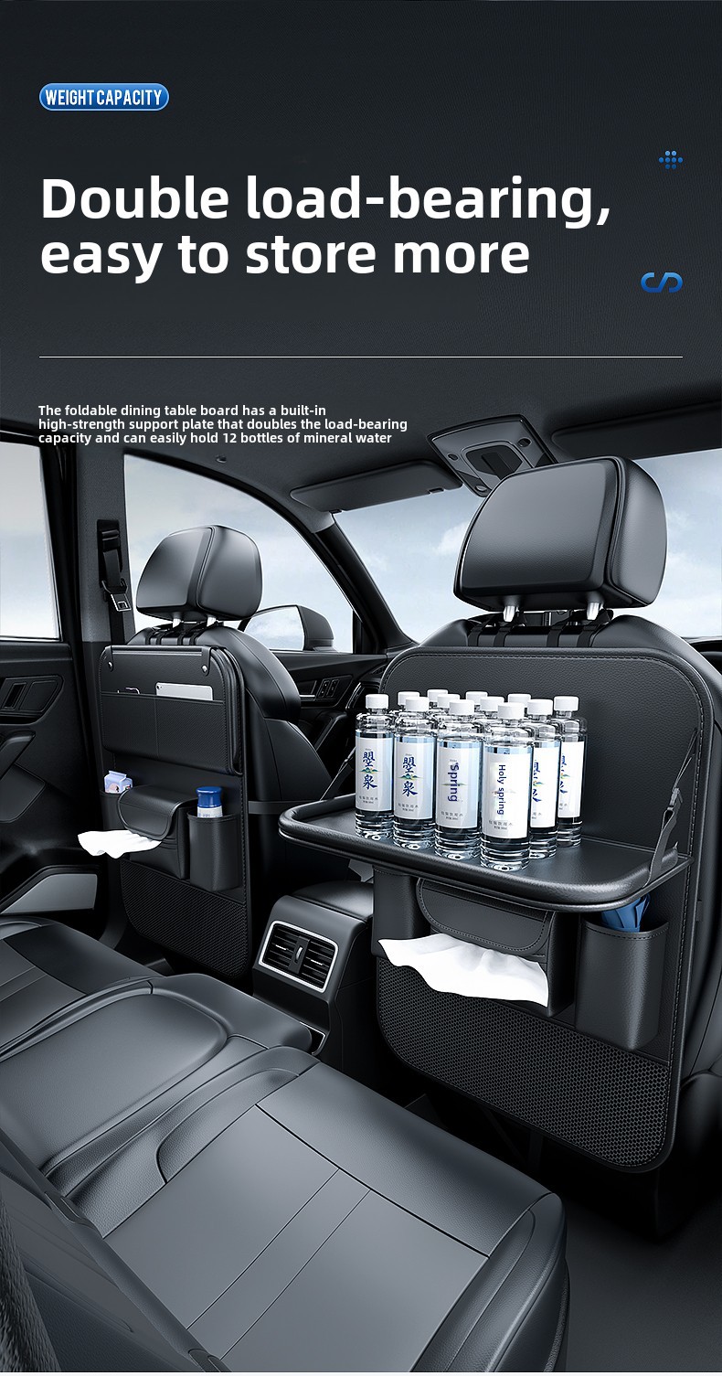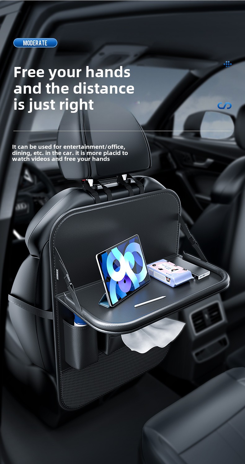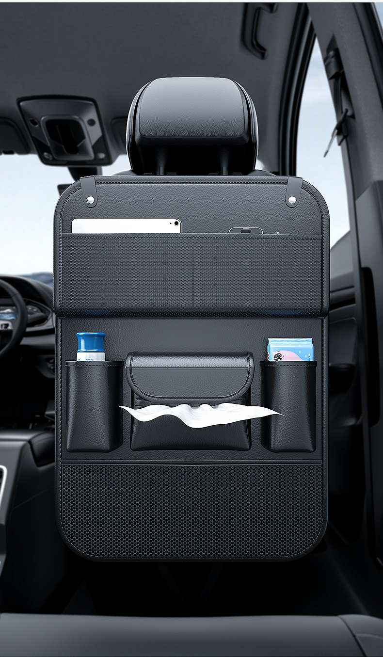Upgrade your vehicle’s interior with this multi-functional car backseat organizer featuring a folding tray table. Durable, spacious, and easy to install for travel.