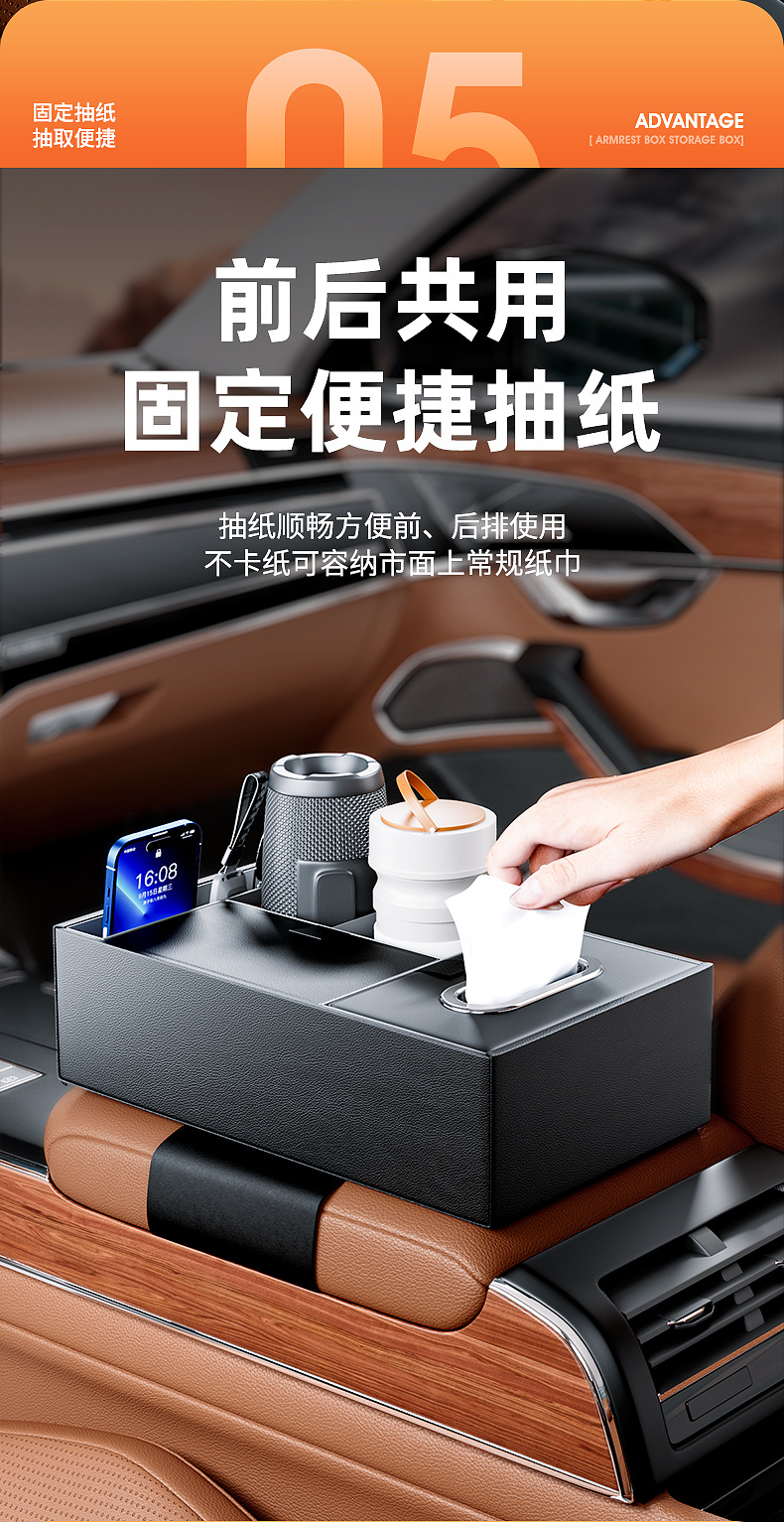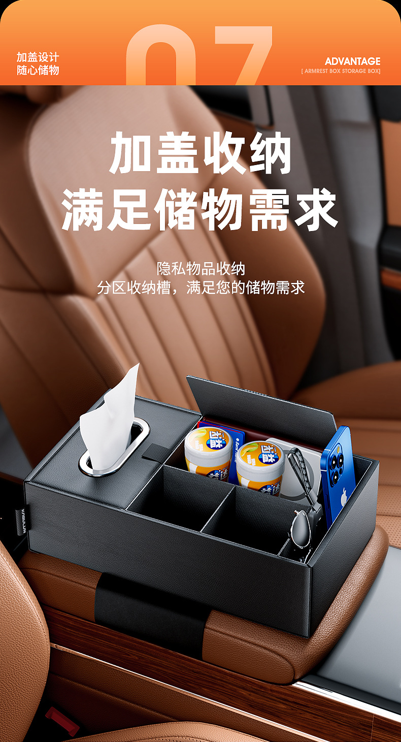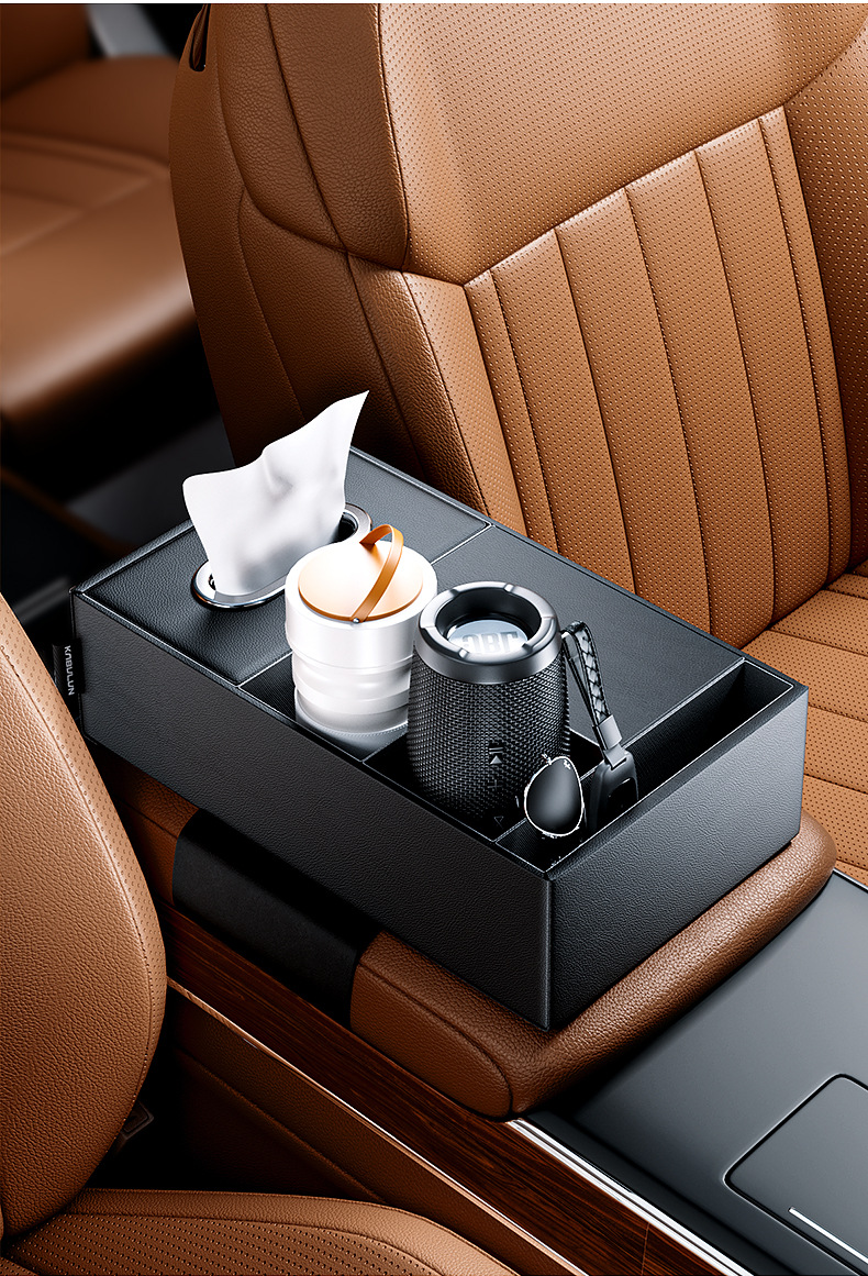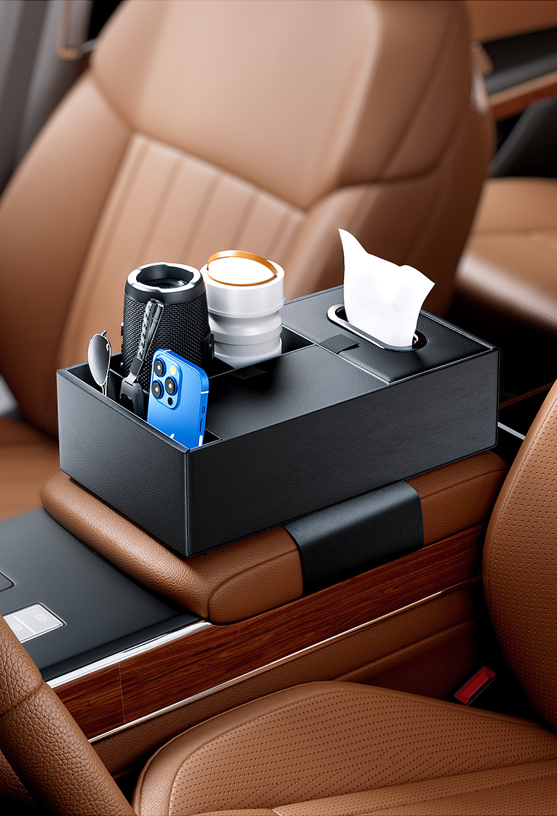 Tags: armrest tray storage, automotive tissue holder, car console organizer, center console storage box, cup holder expander, interior tidy box, vehicle interior accessories