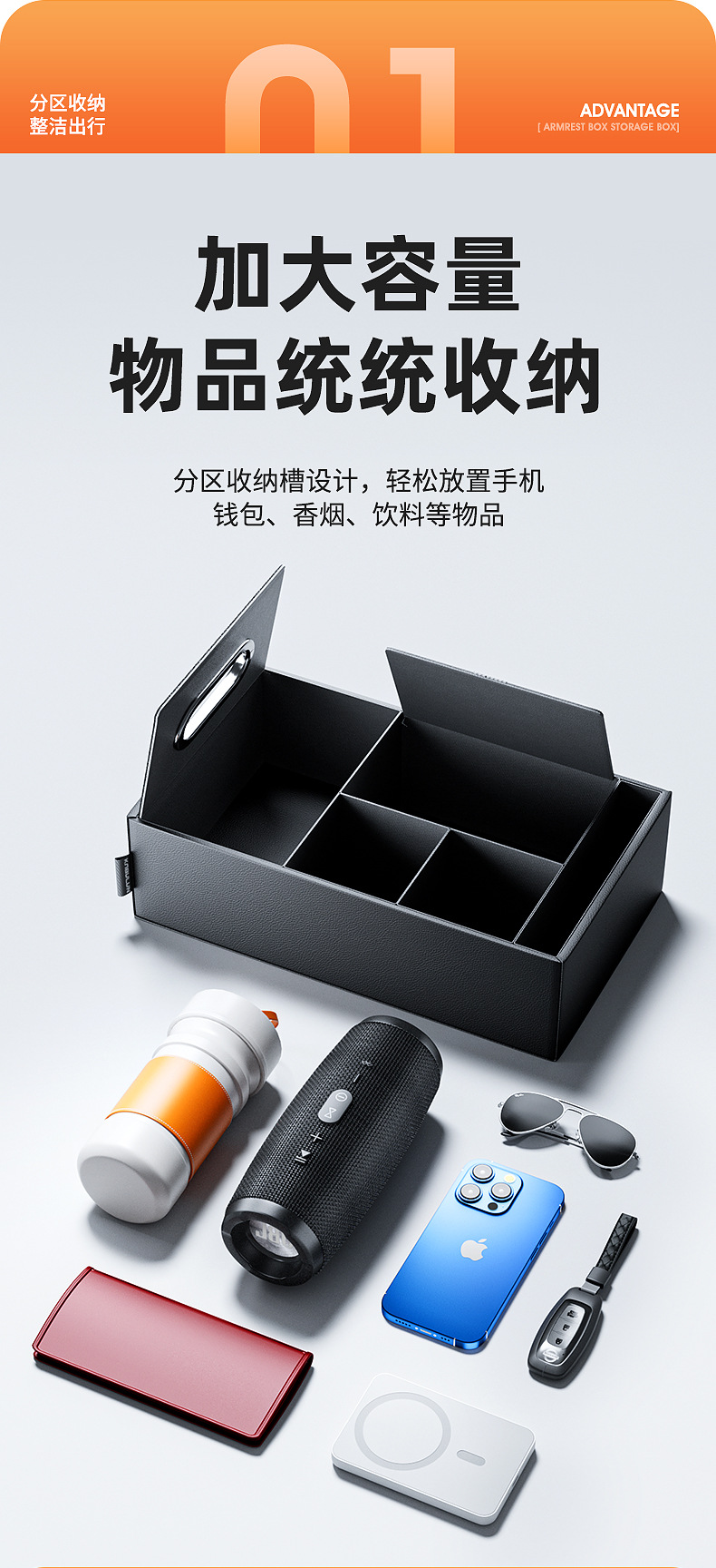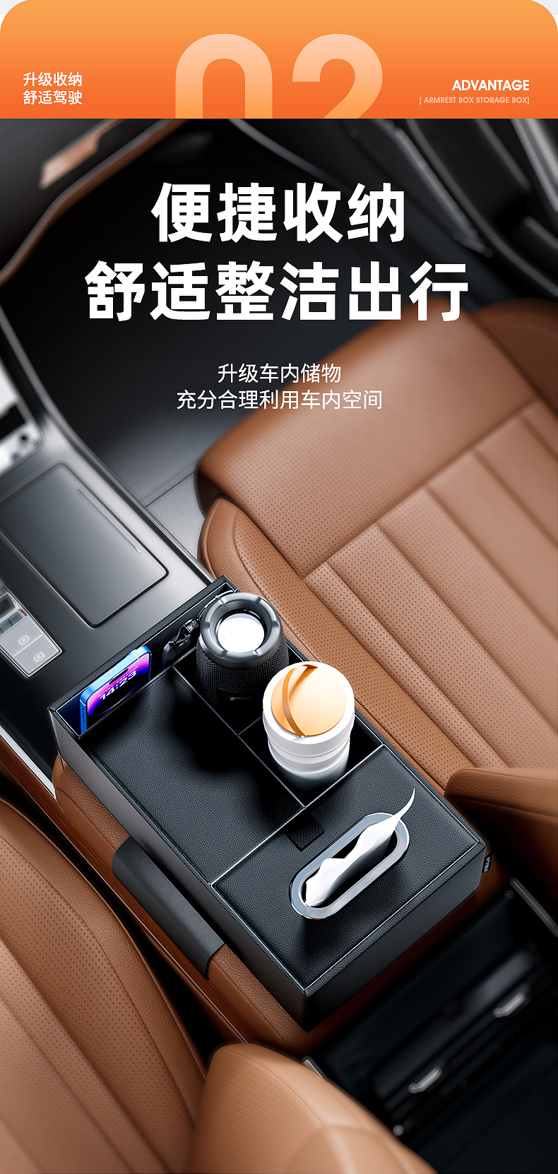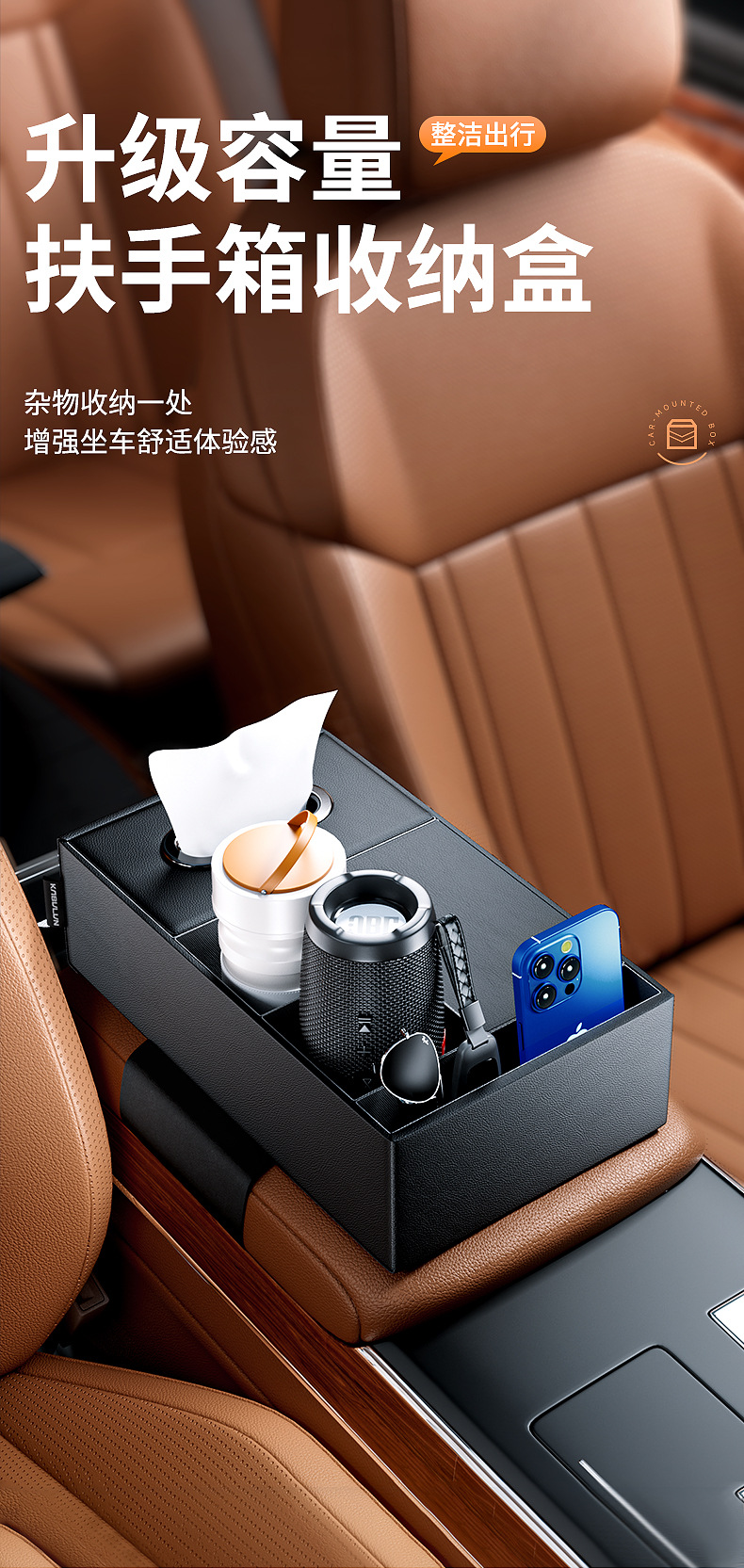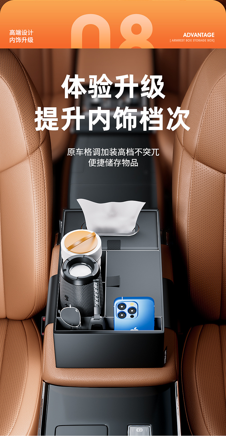 Tags: armrest tray storage, automotive tissue holder, car console organizer, center console storage box, cup holder expander, interior tidy box, vehicle interior accessories
