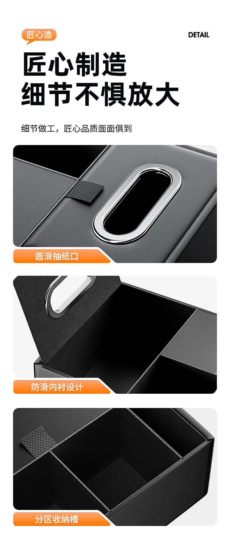 - Multifunctional design integrates an armrest storage bin, dual cup holders, and a tissue dispenser for maximum cabin utility.