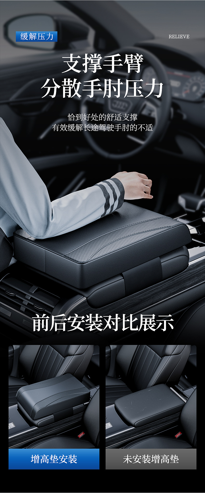 Tags: armrest height booster, auto interior accessory, car armrest pad, center console cushion, console cover protector, memory foam elbow rest
