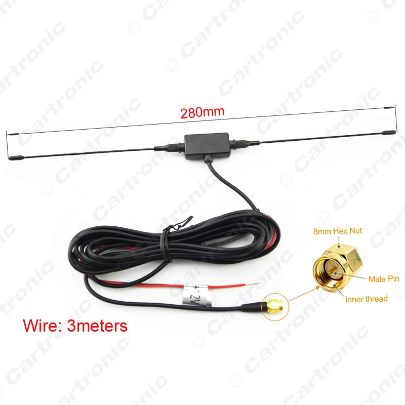 Universal Car Digital TV Antenna with Built-in Signal Amplifier and SMA Male Connector