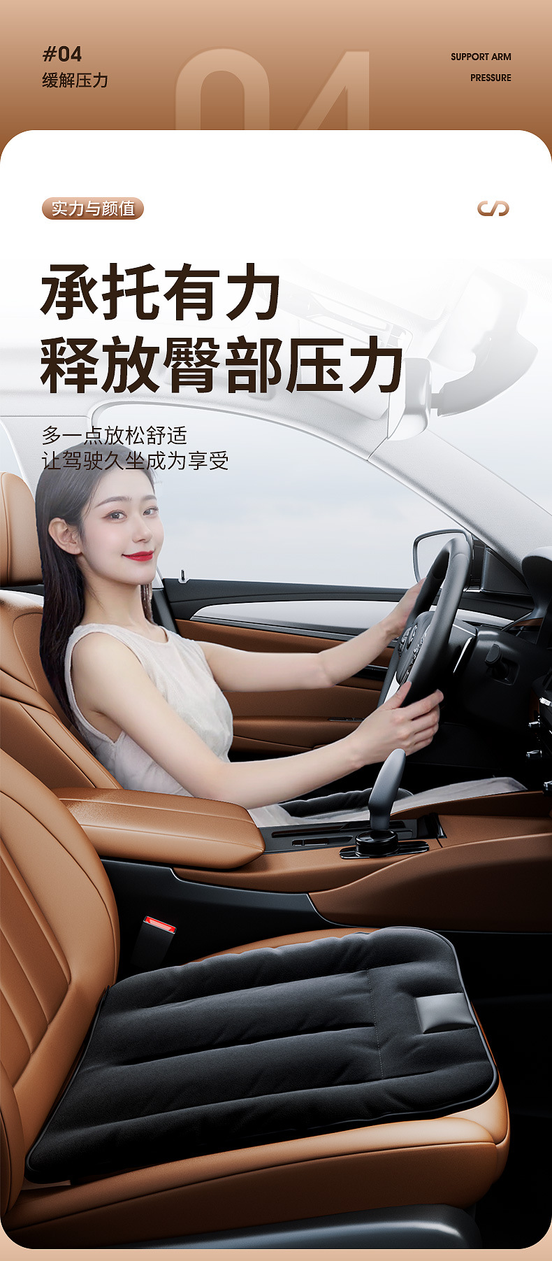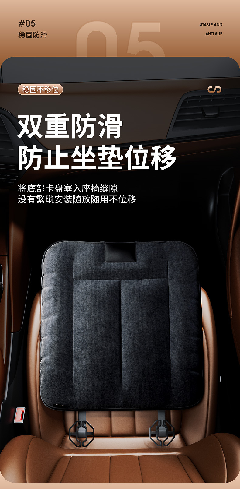 - Non-slip bottom layer prevents the cushion from shifting during entry or exit for a stable driving experience.