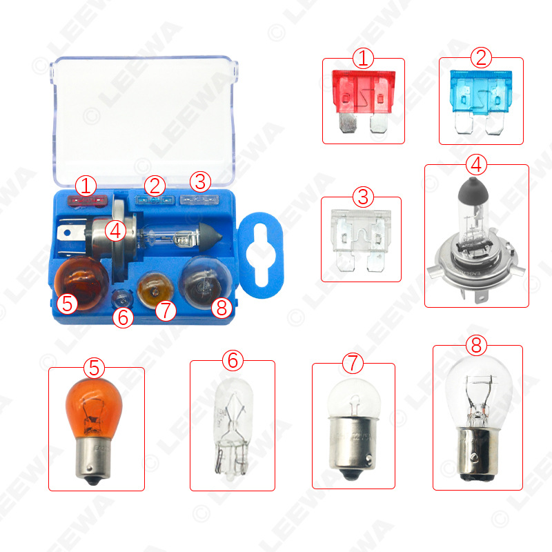 Universal Car Halogen Bulb Kit Emergency Replacement Set H4 Headlight 1157 PY21W R5W W5W 8-Piece Set