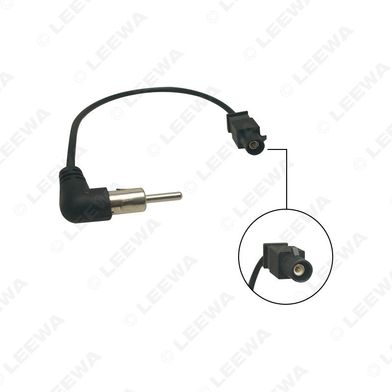 Tags: angled antenna plug, automotive aerial connector, car antenna adapter, FM signal cable, radio converter cable, stereo wiring harness