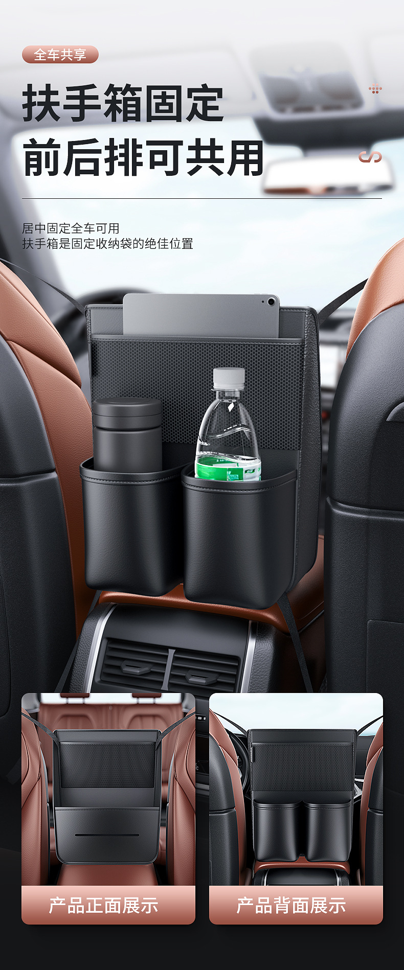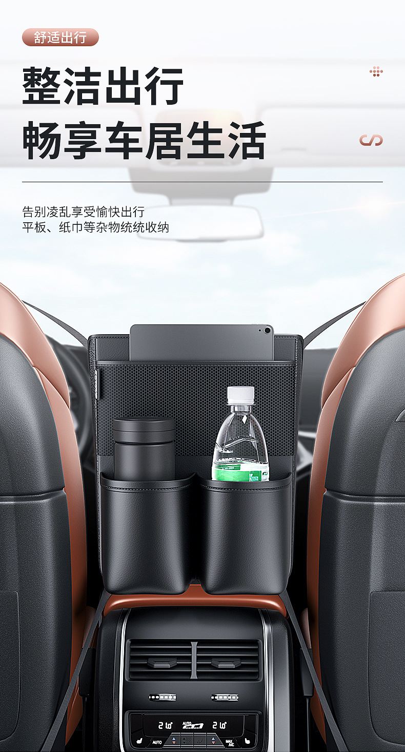 - Maximizes interior space by utilizing the area between or behind front seats for essential storage.