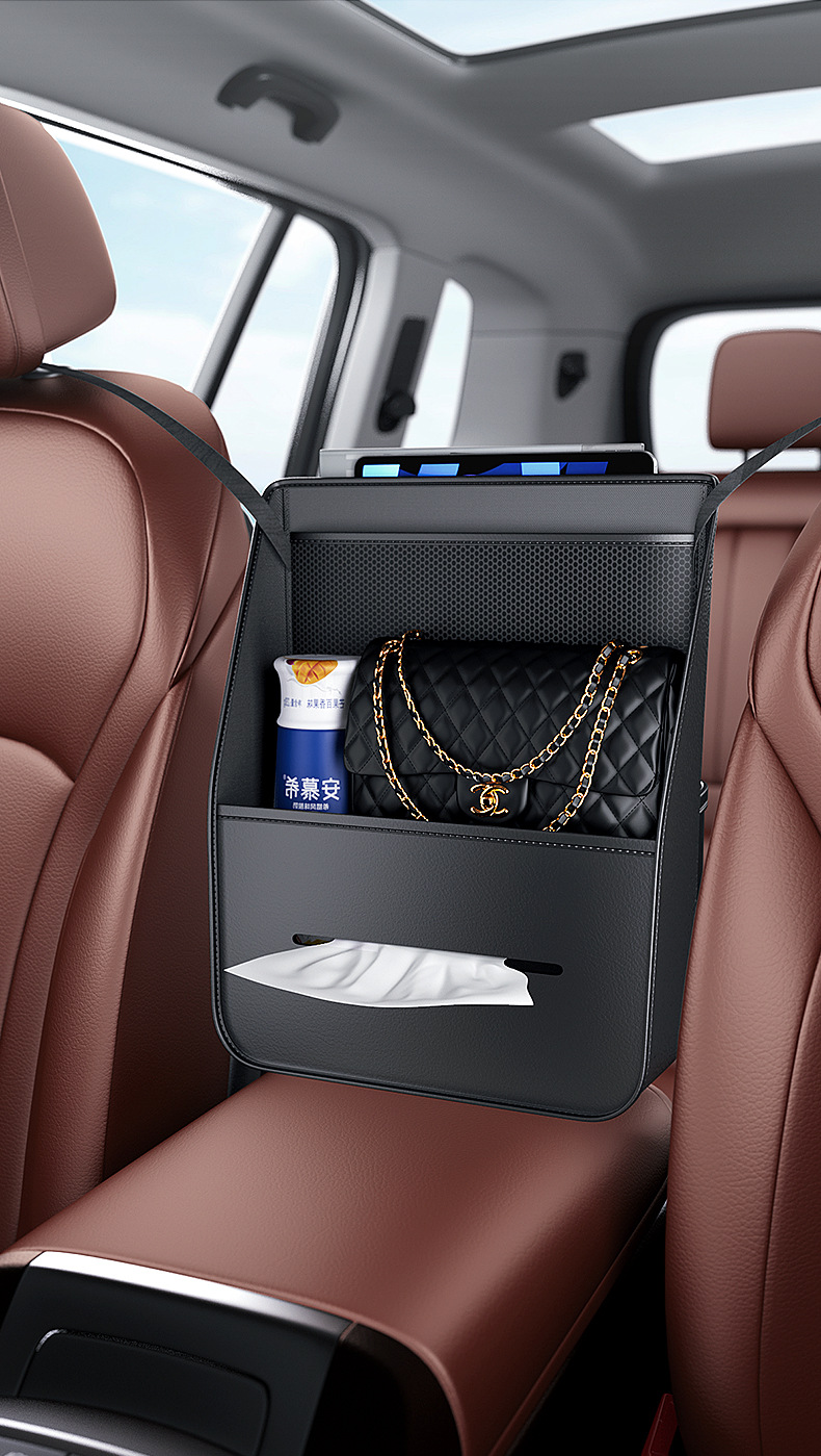 Tags: auto seat back pocket, backseat storage bag, car cabin accessories, car seat organizer, hanging mesh holder, vehicle interior tidying