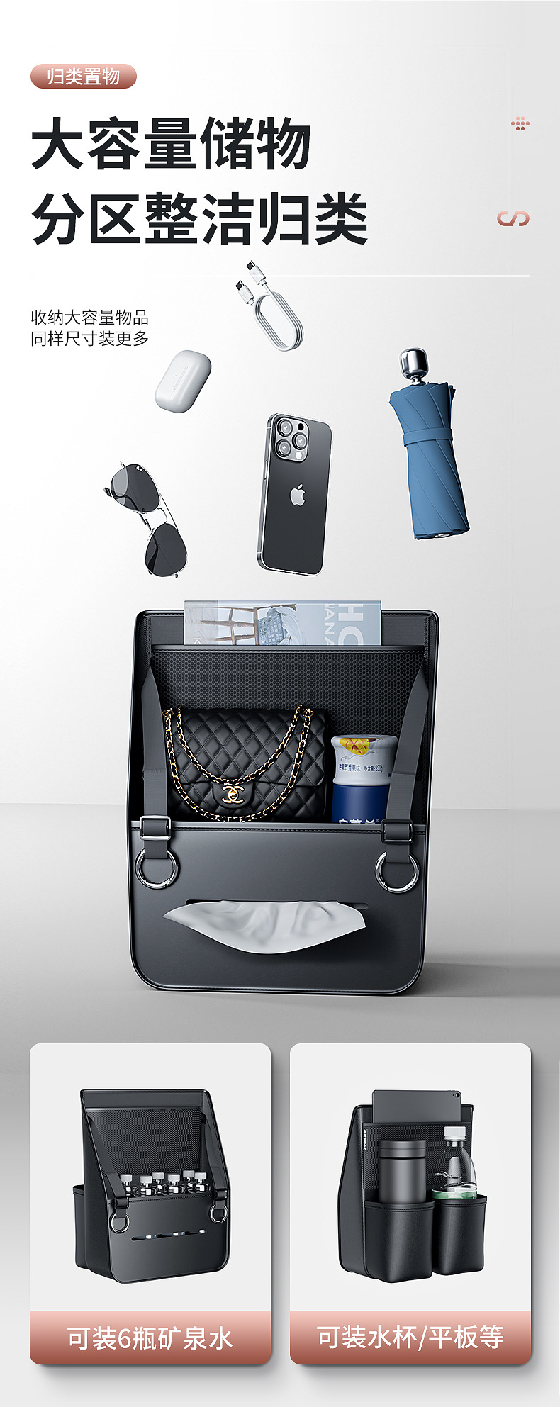 - Features multiple pockets and compartments to organize phones, tissues, water bottles, and accessories.