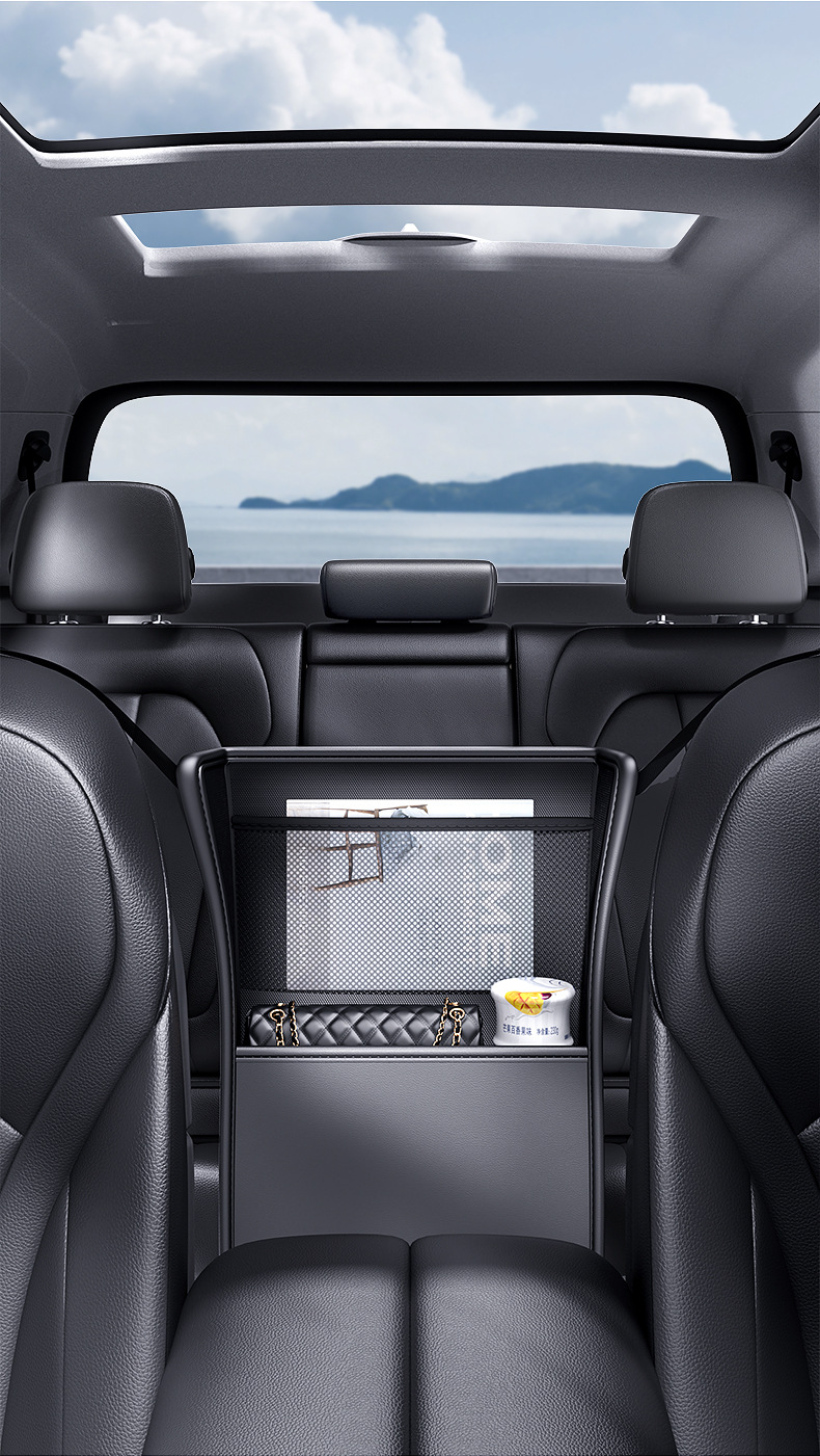 - Integrated child-proof net barrier prevents pets or children from reaching the front seat during driving for enhanced safety.
