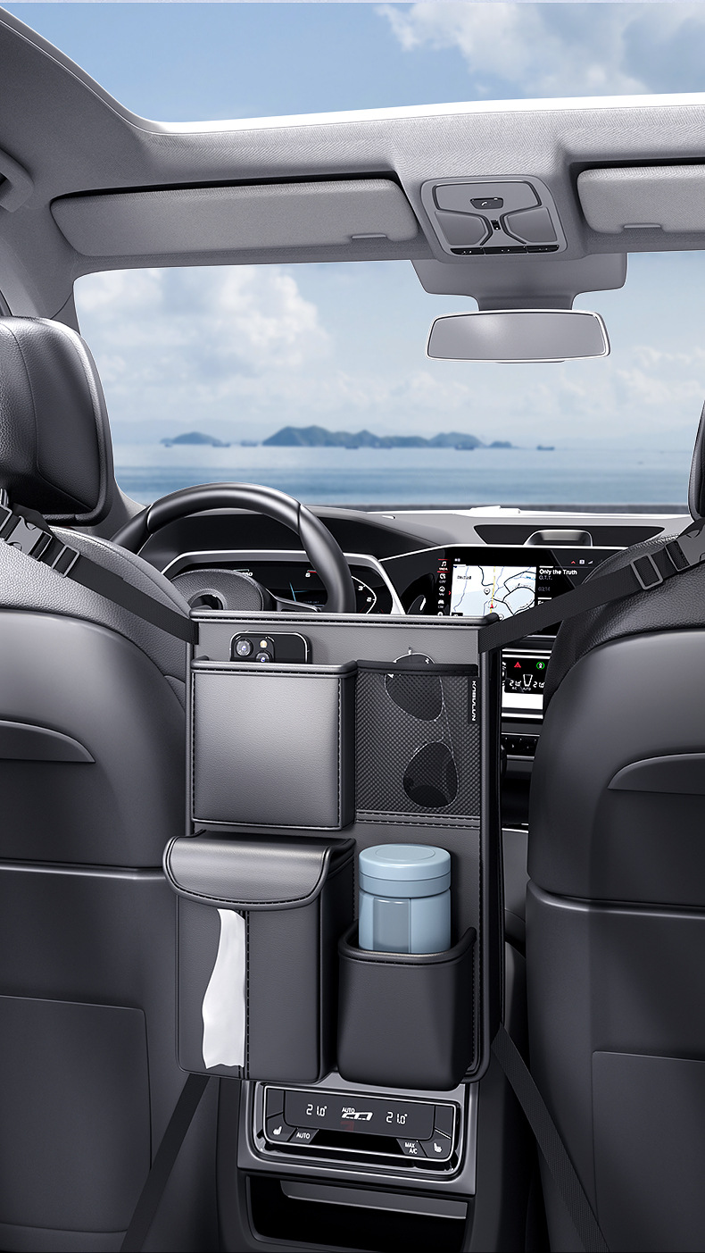 Upgrade your driving experience with this universal car seat back organizer. Featuring a child-proof net and multiple pockets for maximum storage efficiency.