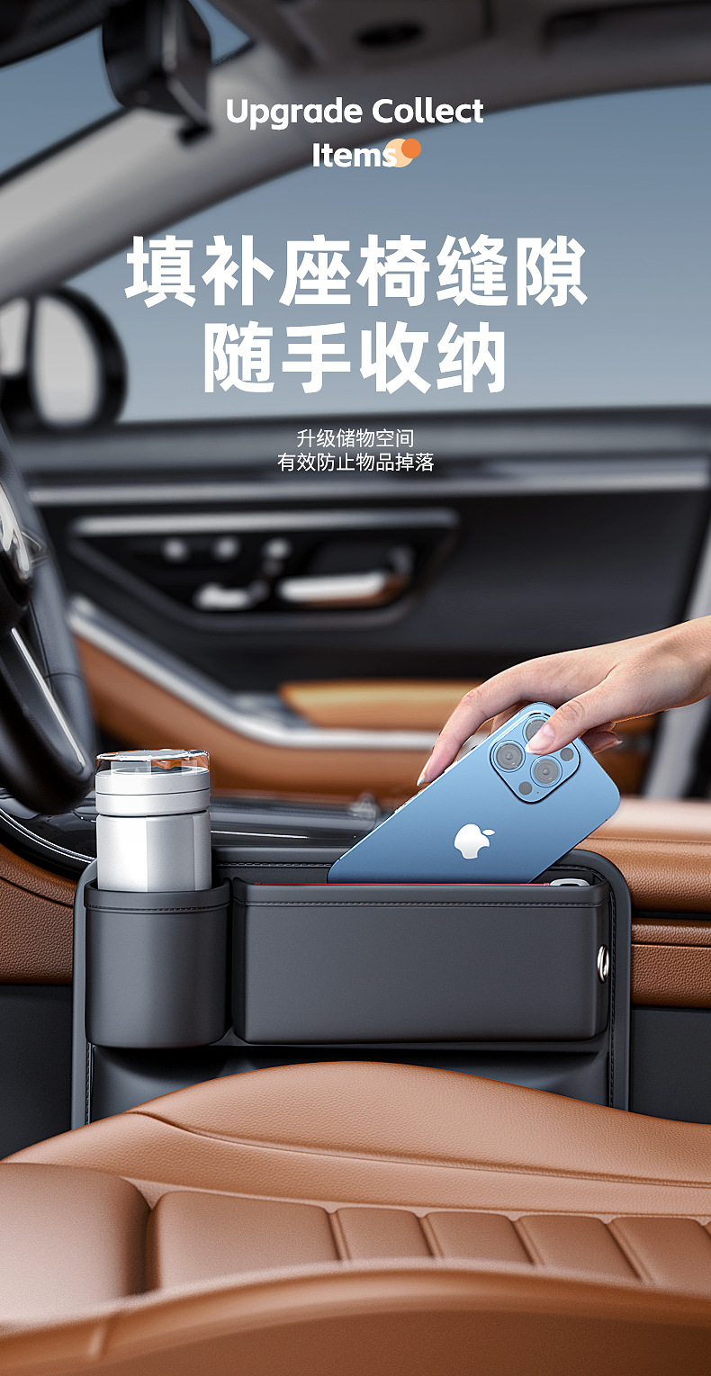 Tags: automotive interior organizer, car cup holder extender, car gap filler, console storage box, seat side pocket, vehicle crack stuffer