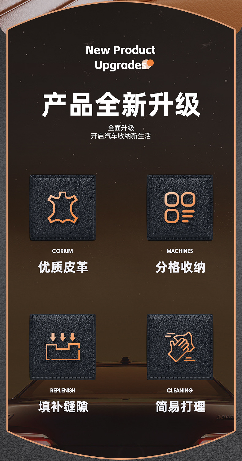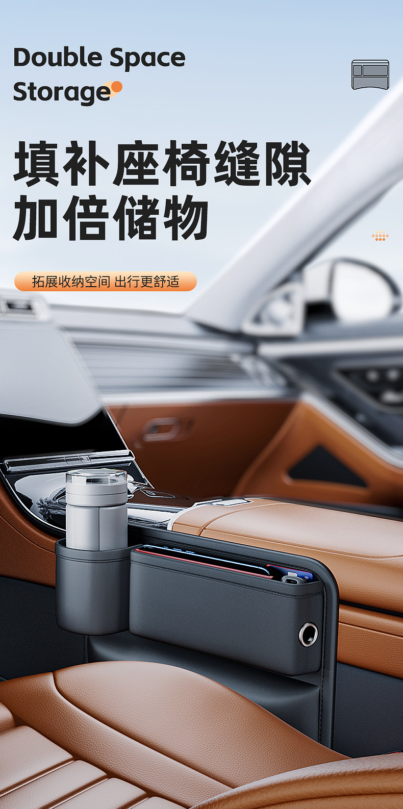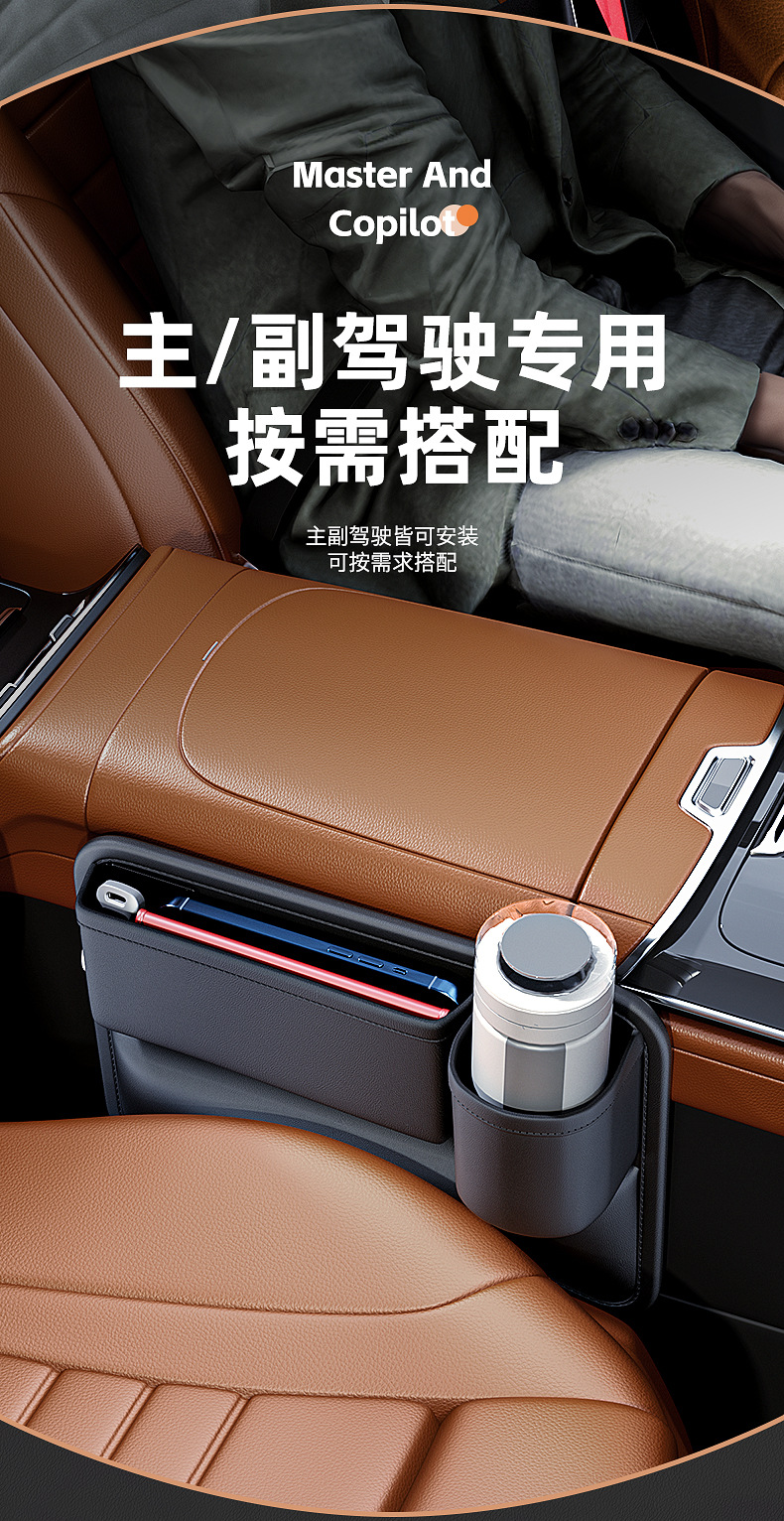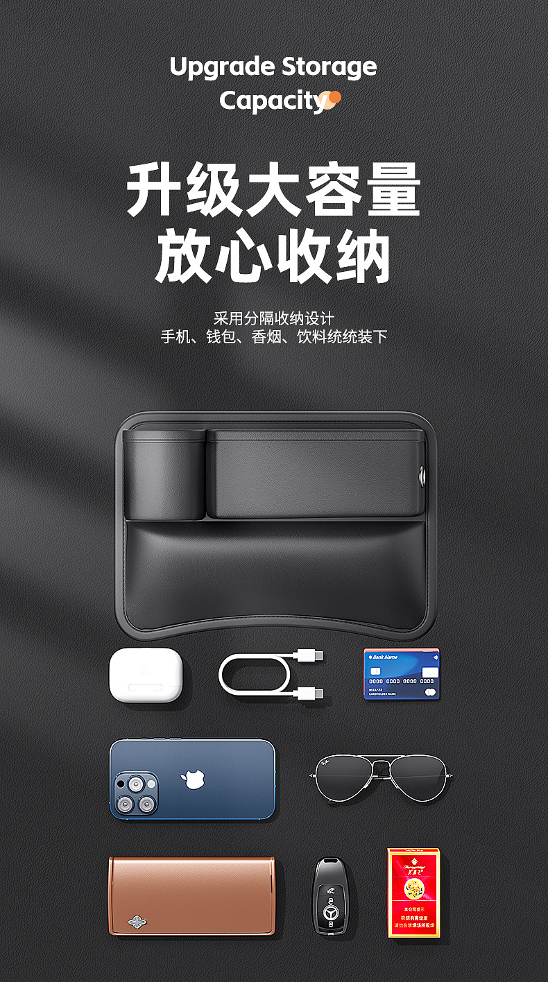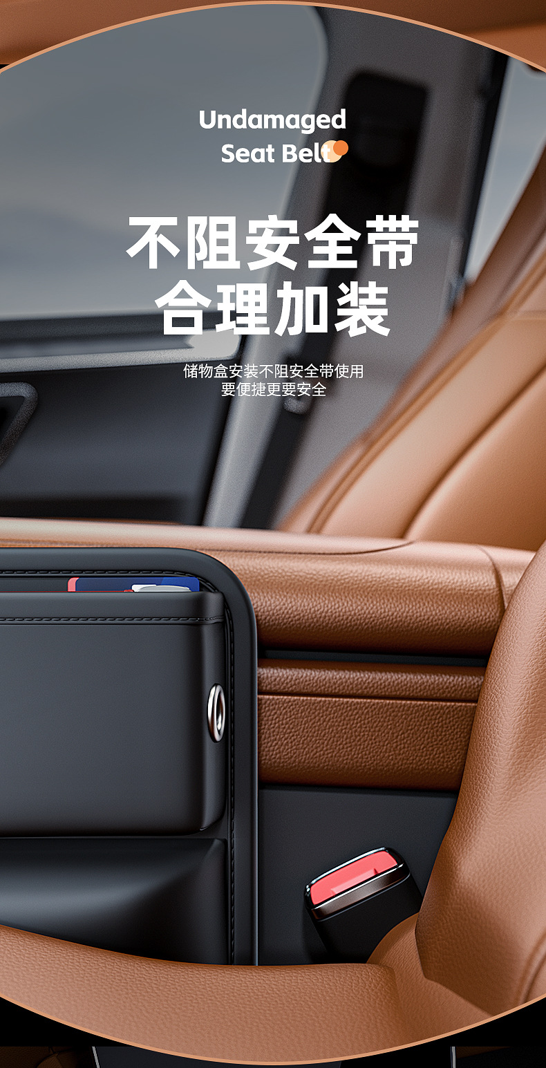 - Maximizes storage space by utilizing the narrow gap between the front seat and center console for daily essentials.