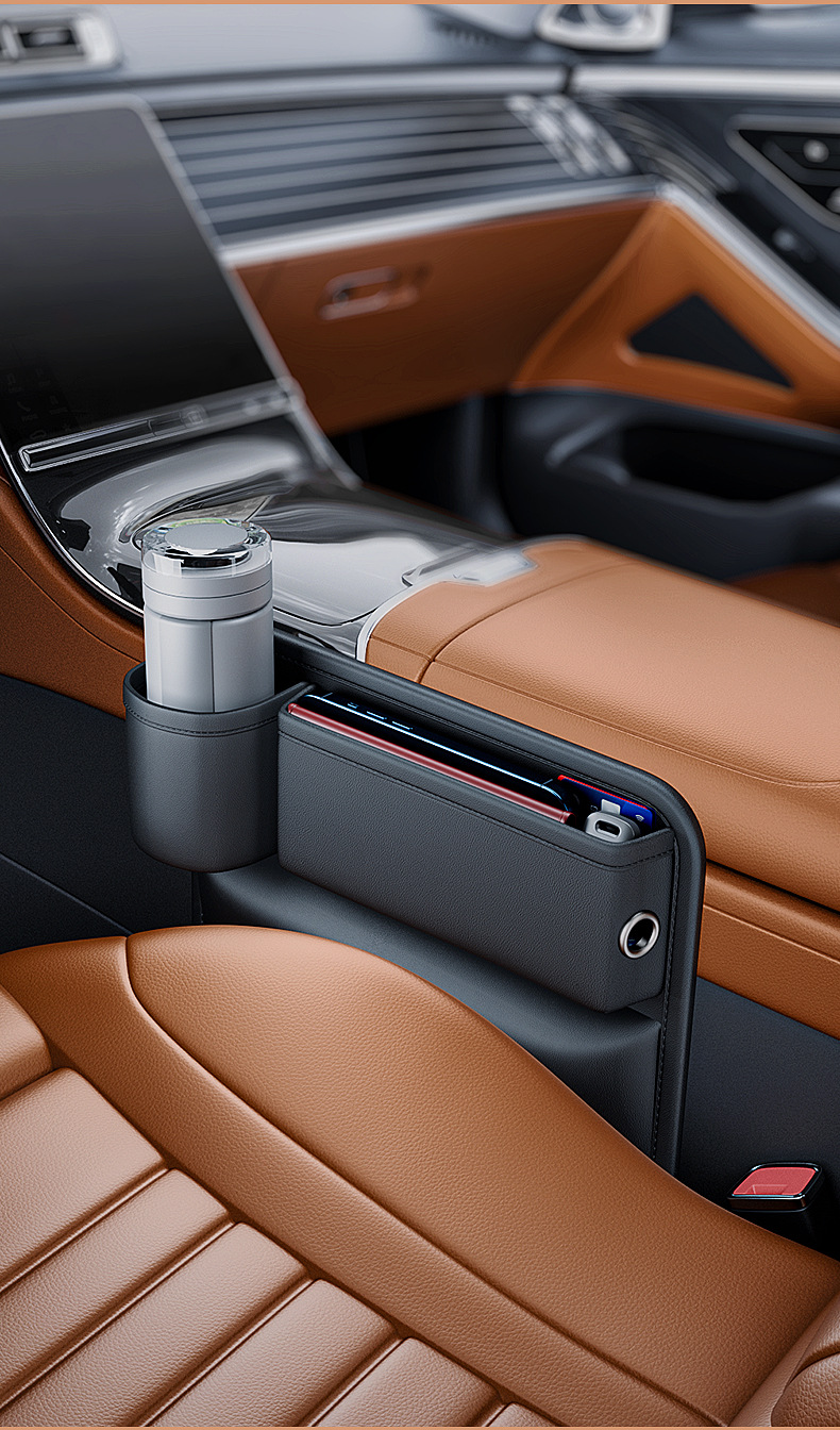 Organize your vehicle interior with this universal car seat gap storage box. Features a built-in cup holder and durable construction to keep essentials reachable.