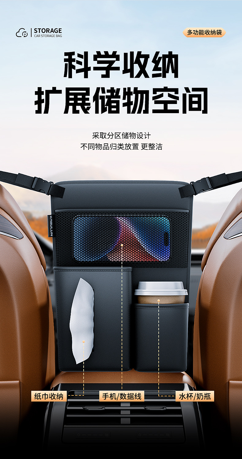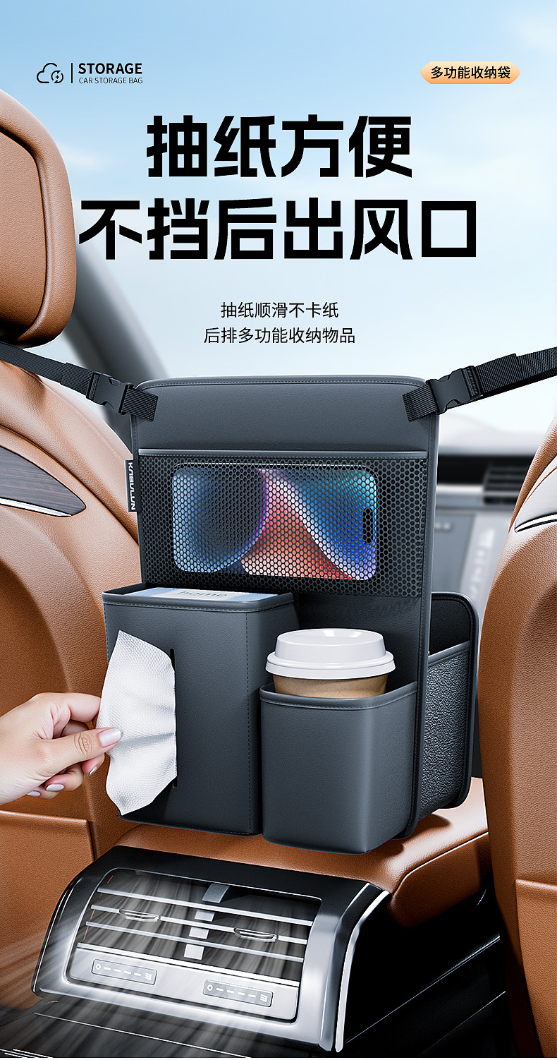 Tags: armrest storage bag, auto interior storage, backseat hanging pouch, car seat organizer, car tissue holder, center console bag, vehicle cabin tidy