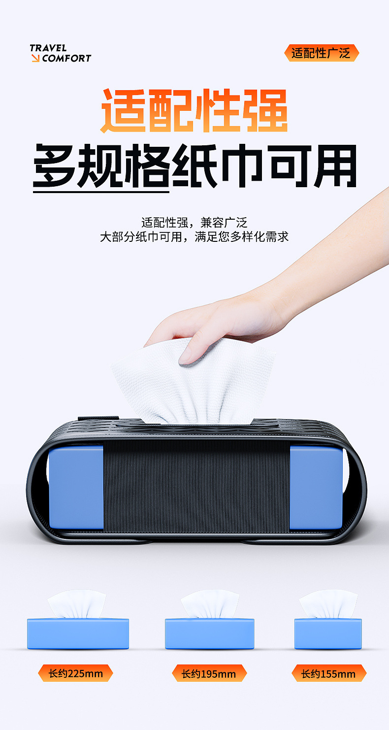 - Slim and compact design maintains a clear driving view while providing organized storage for standard tissue packs.