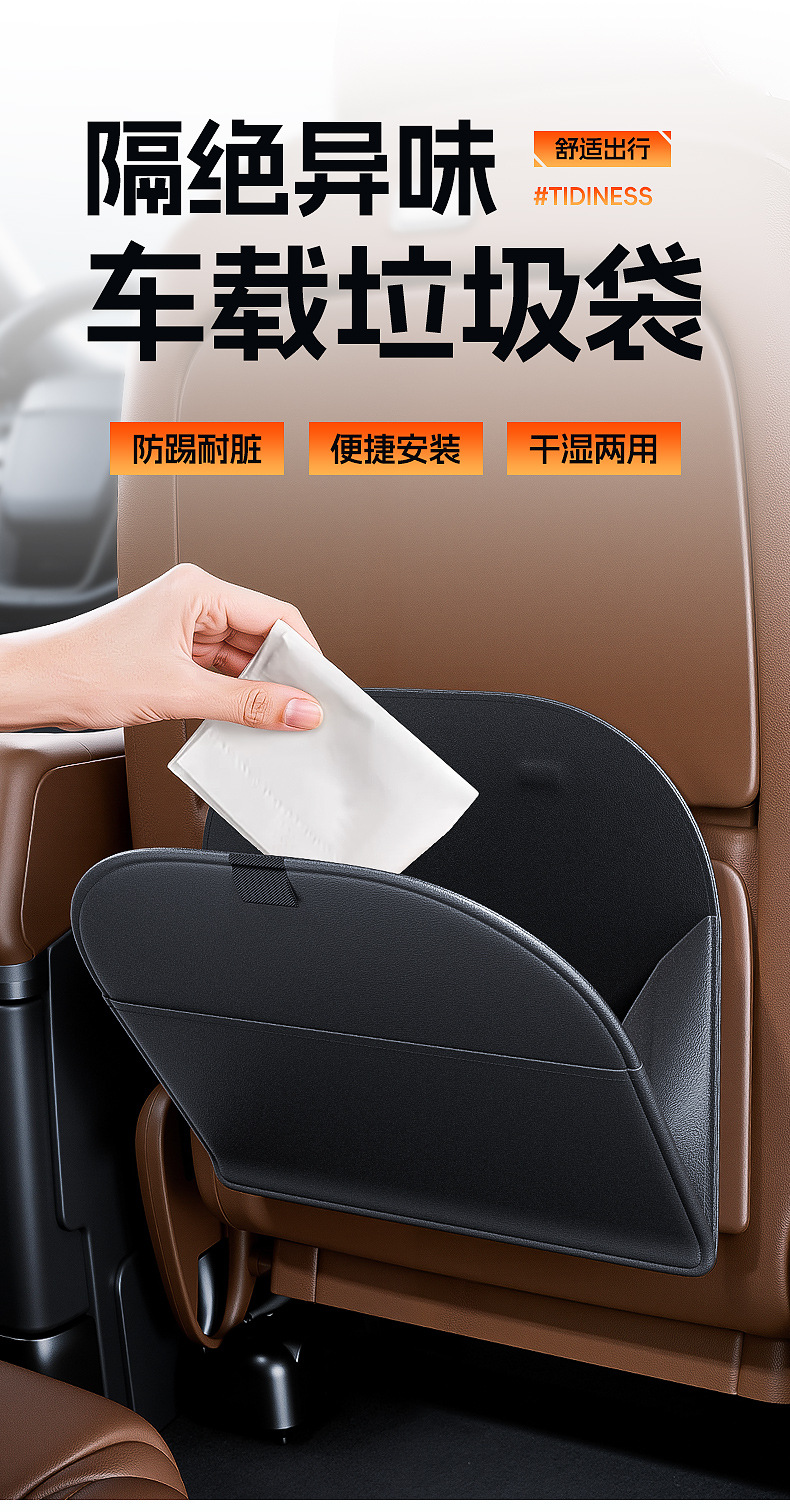 Tags: auto kick pad, automotive garbage bag, car bin, car trash can, hanging waste basket, seat back organizer, vehicle interior storage