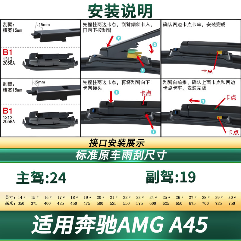 Universal Fit Frameless Windshield Wiper Blades with Quiet Rubber Strips for Mercedes-Benz AMG A45
