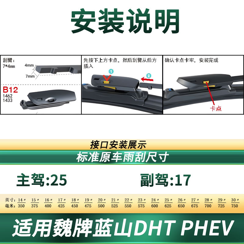 Upgrade your driving visibility with these premium universal frameless wiper blades for WEY Lanshan DHT-PHEV. Featuring silent rubber technology for a streak-free wipe.