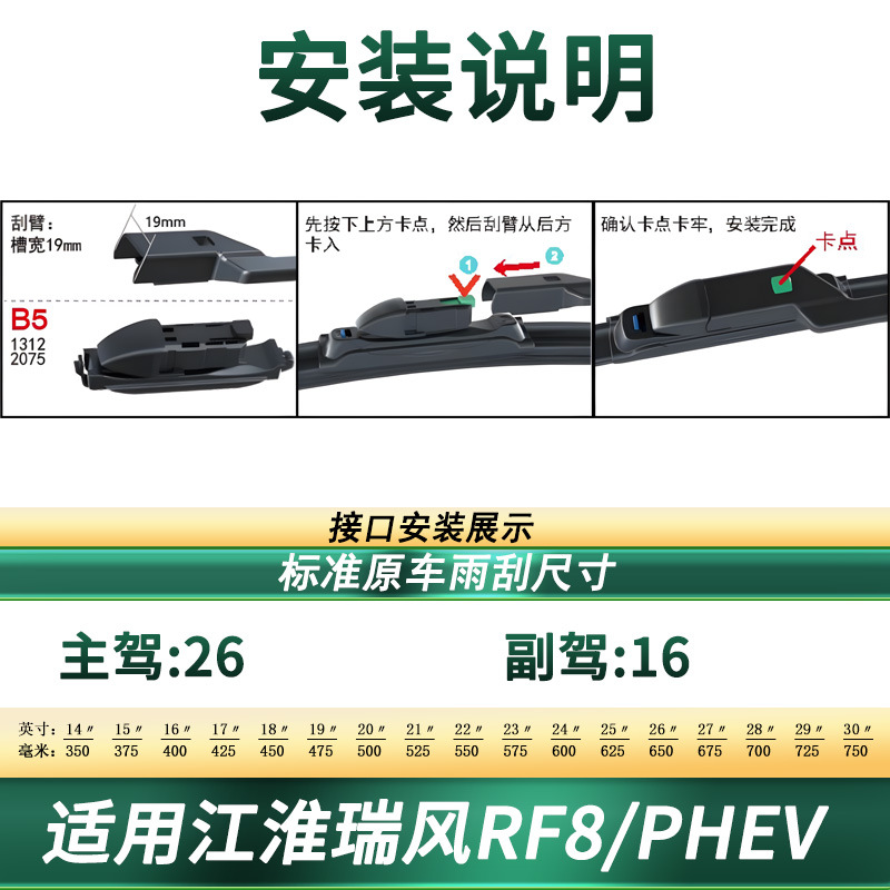 Upgrade your JAC Refine RF8/PHEV with high-performance frameless wiper blades. Featuring silent rubber technology for quiet, streak-free visibility in any weather.