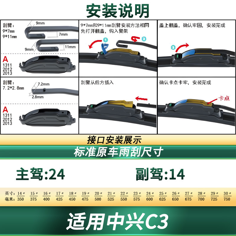 - Multi-functional adapter system provides wide compatibility with various wiper arm types for easy and secure installation.