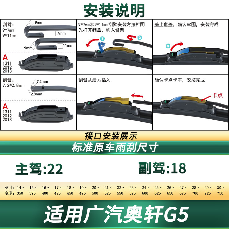 Tags: automotive window cleaning, car exterior accessories, frameless wipers, GAC AoXuan G5 parts, rubber wiper refills, silent wiper blade, windshield wiper blades