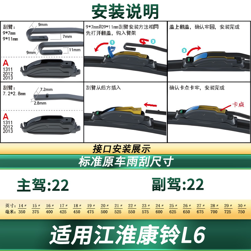 Upgrade your JAC Kangling L6 with universal frameless windshield wiper blades. Featuring silent rubber technology for a streak-free, quiet, and clear vision.